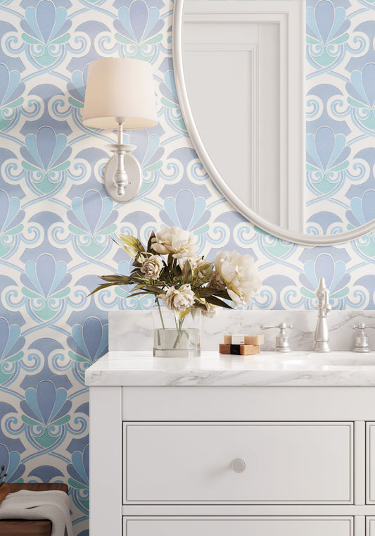 Olympia Midcentury Clam Shell Geometric or Bathroom in Blue