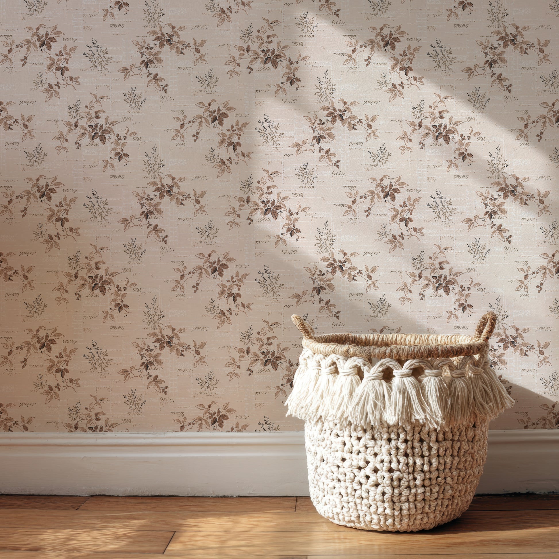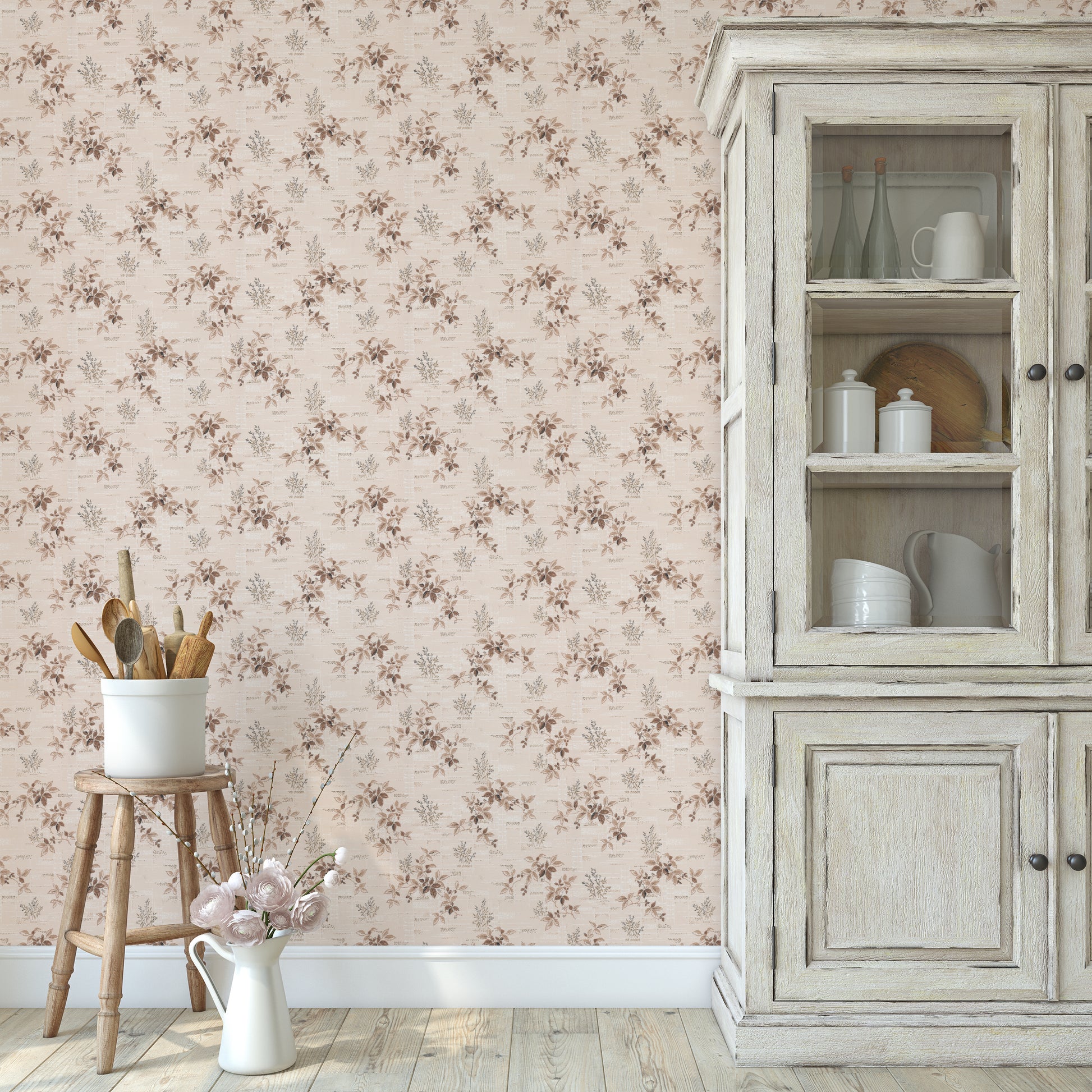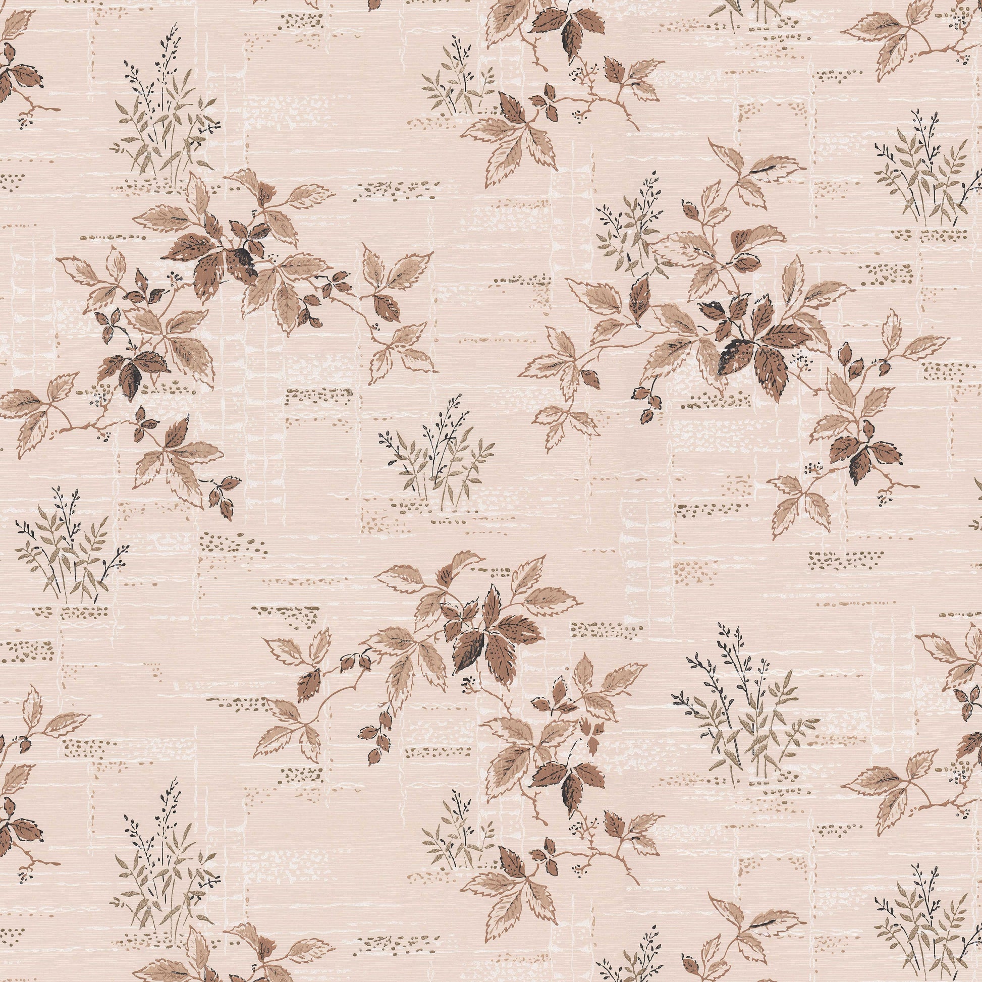 This wallpaper is a reproduction of an authentic 1950s botanical design salvaged as part of the Hannah's Treasures Vintage Wallpaper collection.