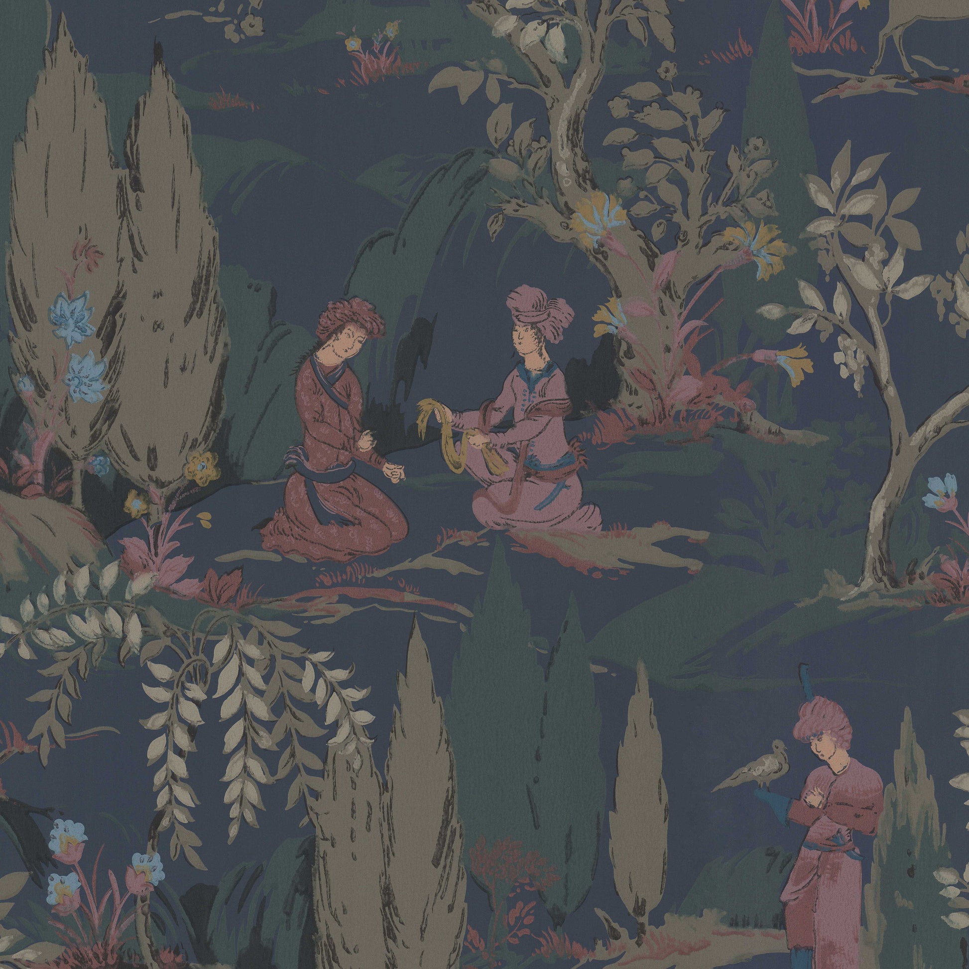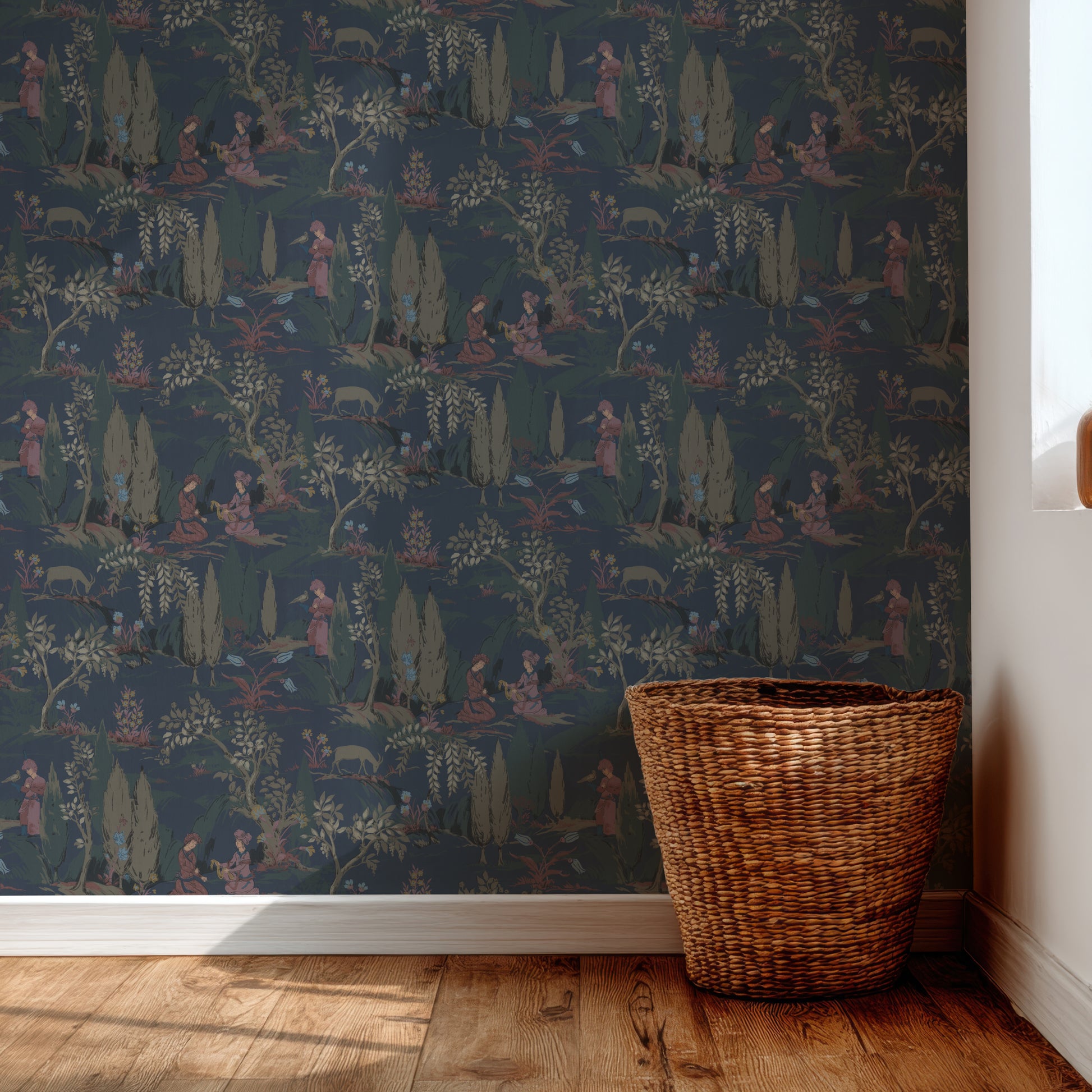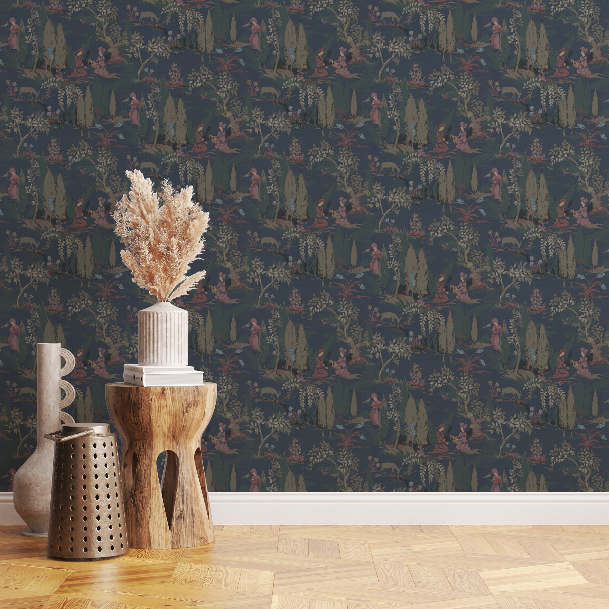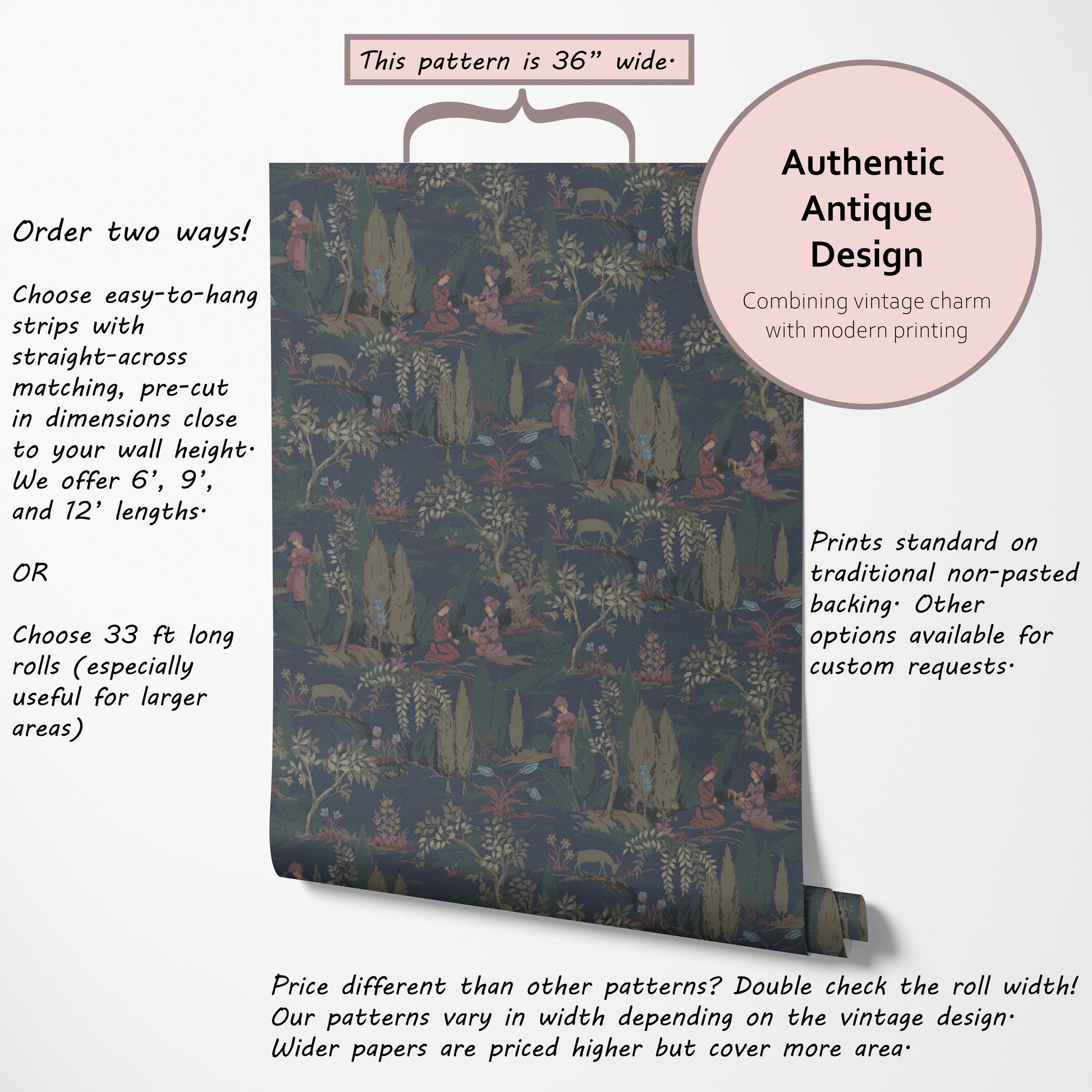 This wallpaper is a reproduction of an authentic 1920s scenic design salvaged as part of the Hannah's Treasures Vintage Wallpaper collection.