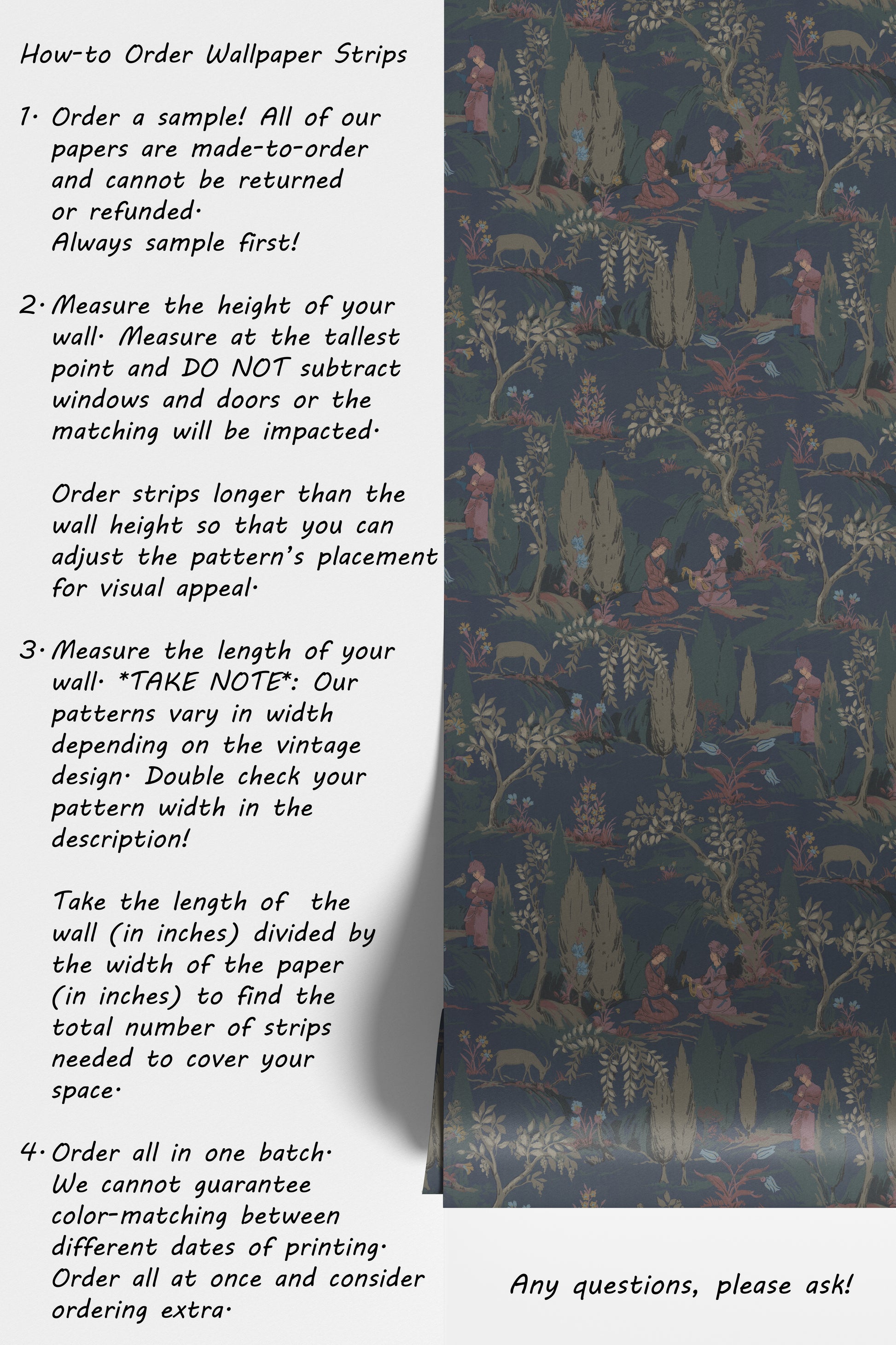 - Order a sample -- all of our wallpaper reproduction are made-to-order and cannot be returned or refunded. Always sample first!
