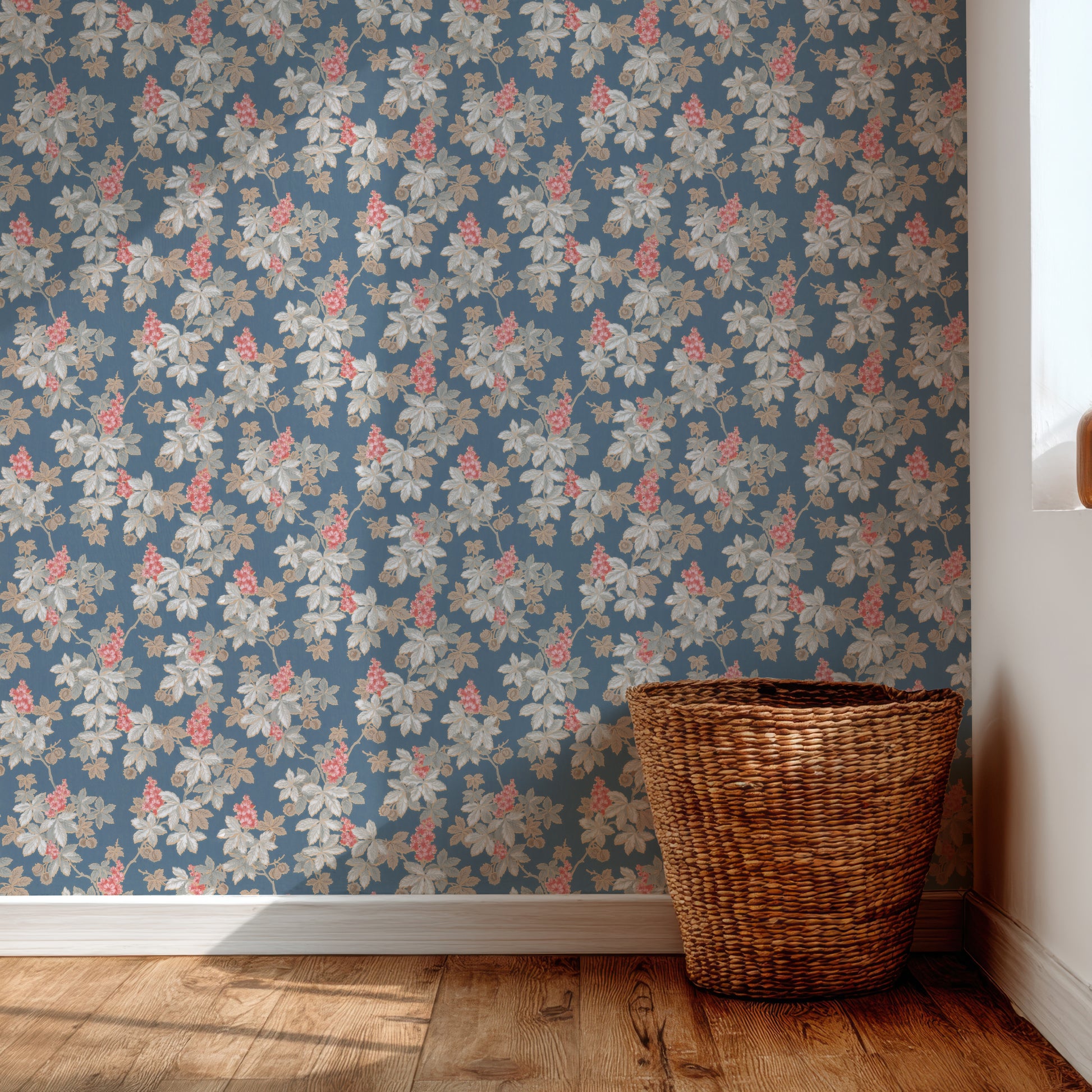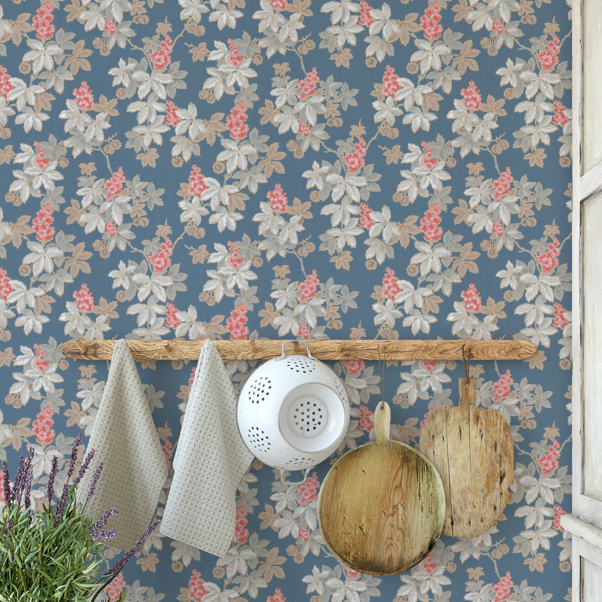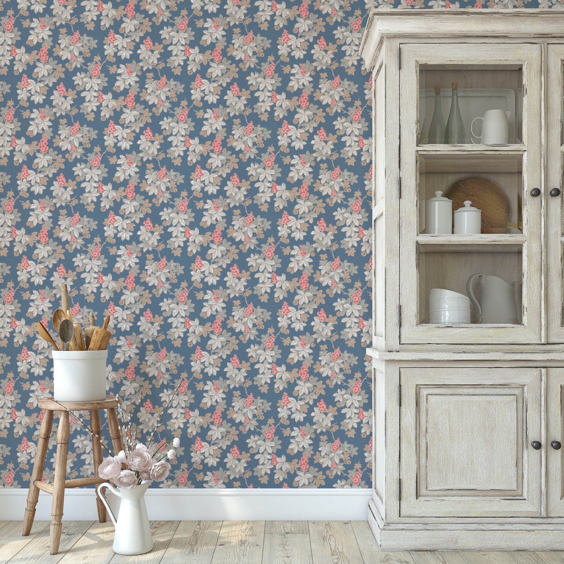 This wallpaper is a reproduction of an authentic 1940s botanical design salvaged as part of the Hannah's Treasures Vintage Wallpaper collection.