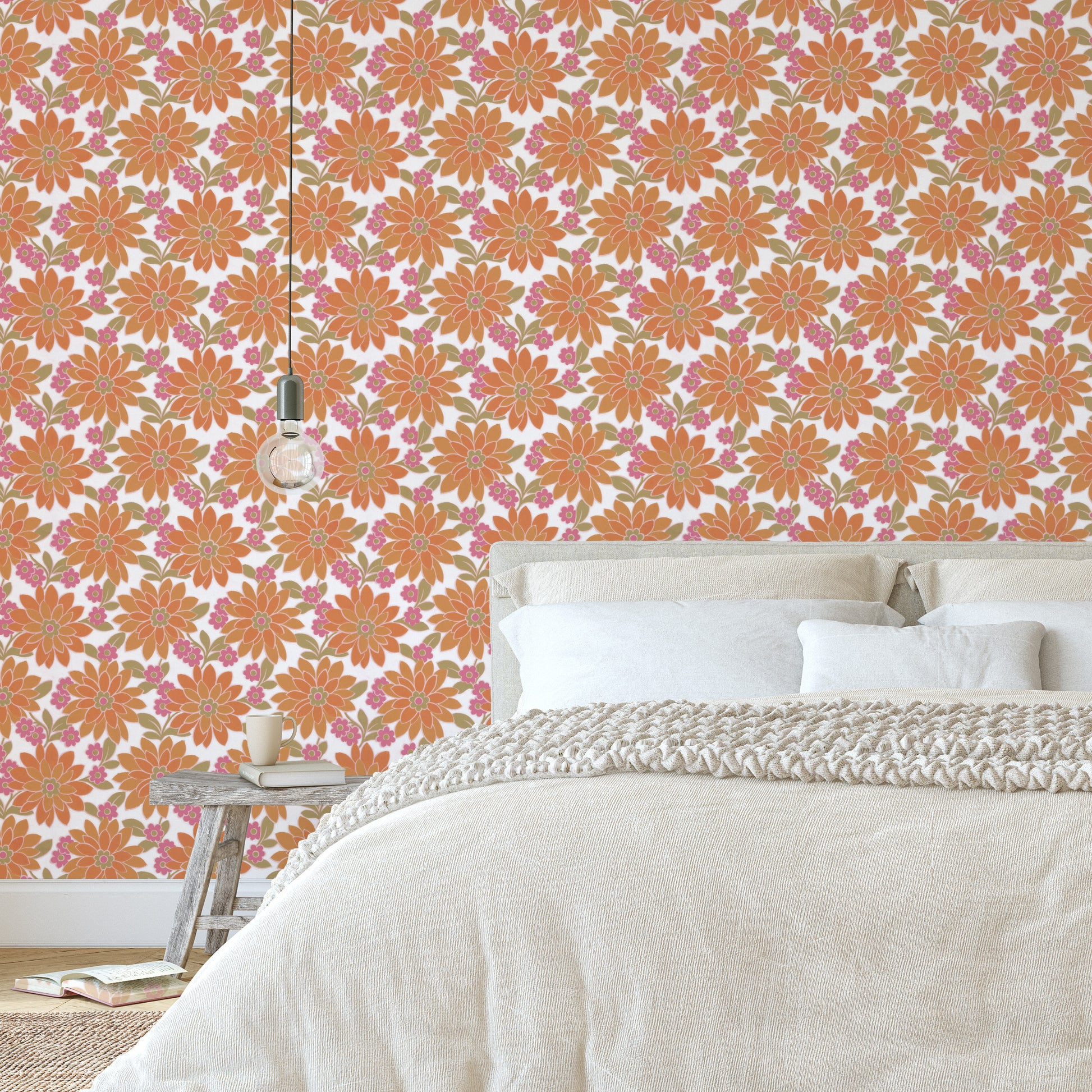This wallpaper is a reproduction of an authentic 1960s floral design salvaged as part of the Hannah's Treasures Vintage Wallpaper collection.