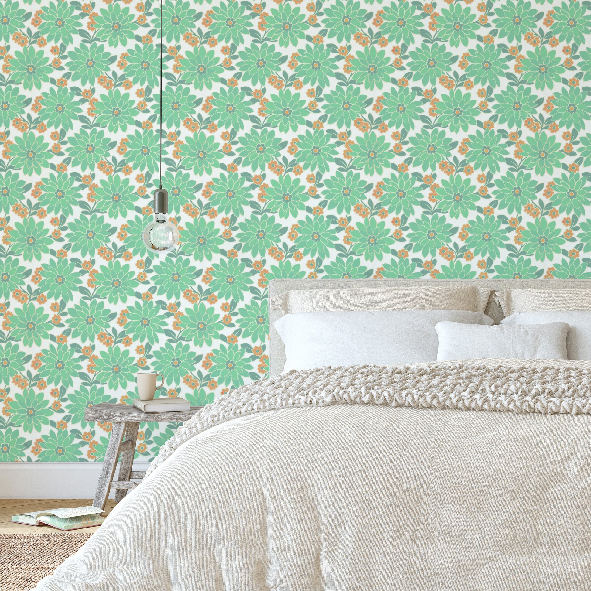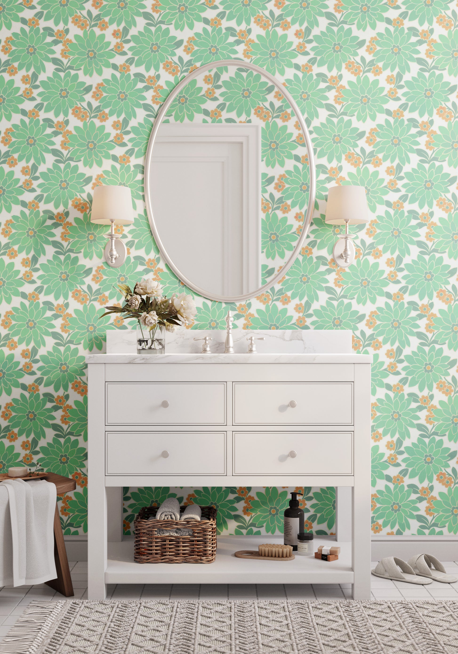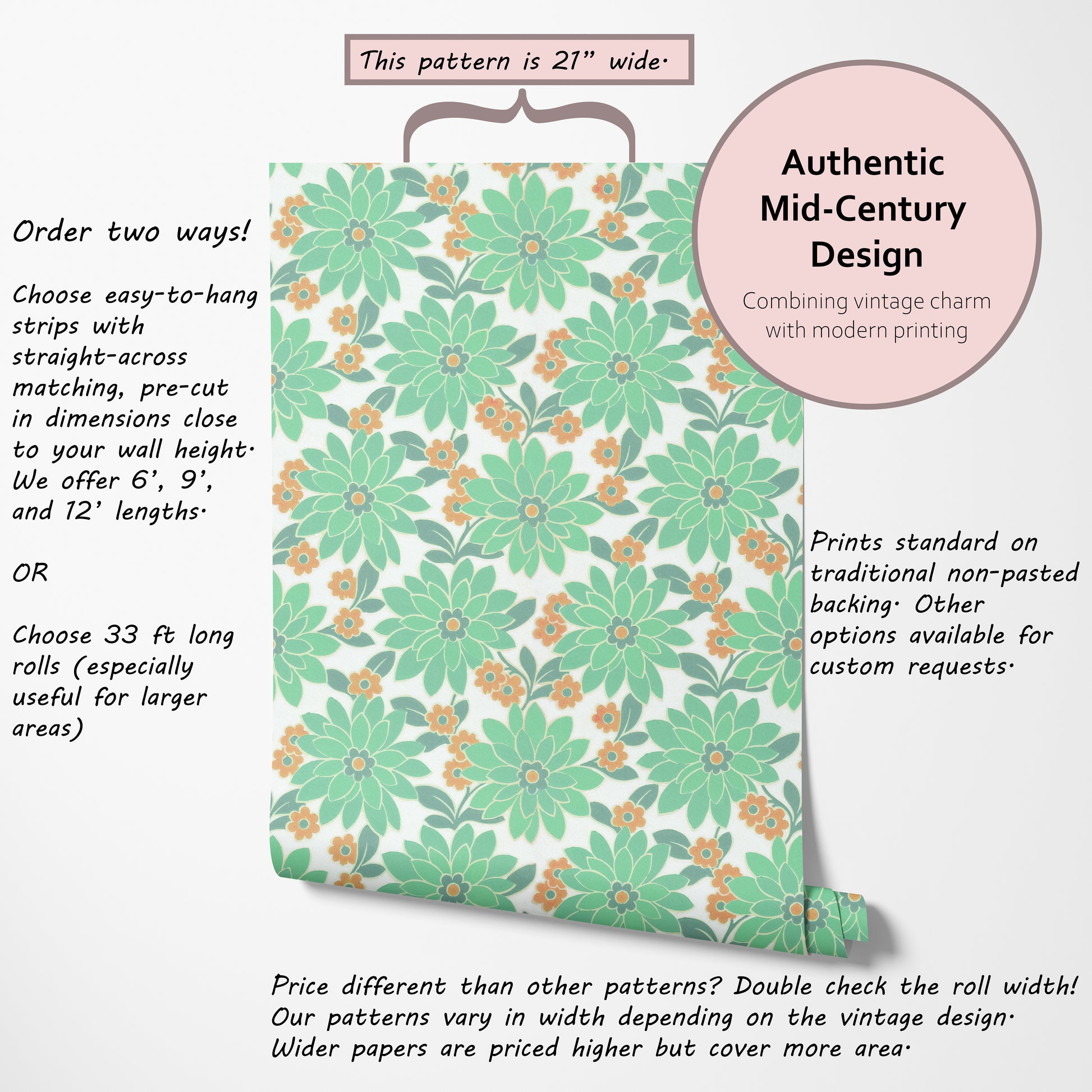 This wallpaper is a reproduction of an authentic 1960s floral design salvaged as part of the Hannah's Treasures Vintage Wallpaper collection.