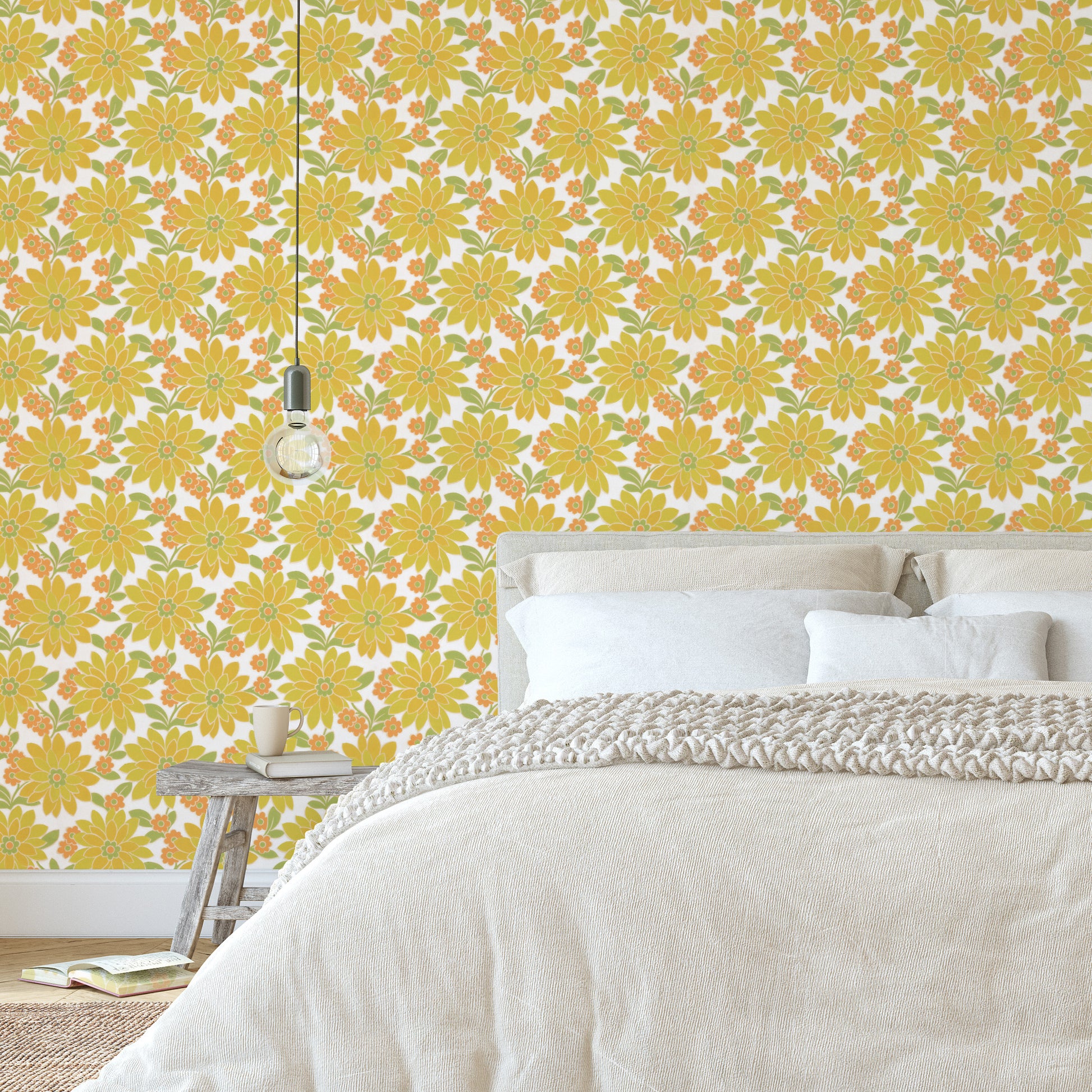 This wallpaper is a reproduction of an authentic 1960s floral design salvaged as part of the Hannah's Treasures Vintage Wallpaper collection.