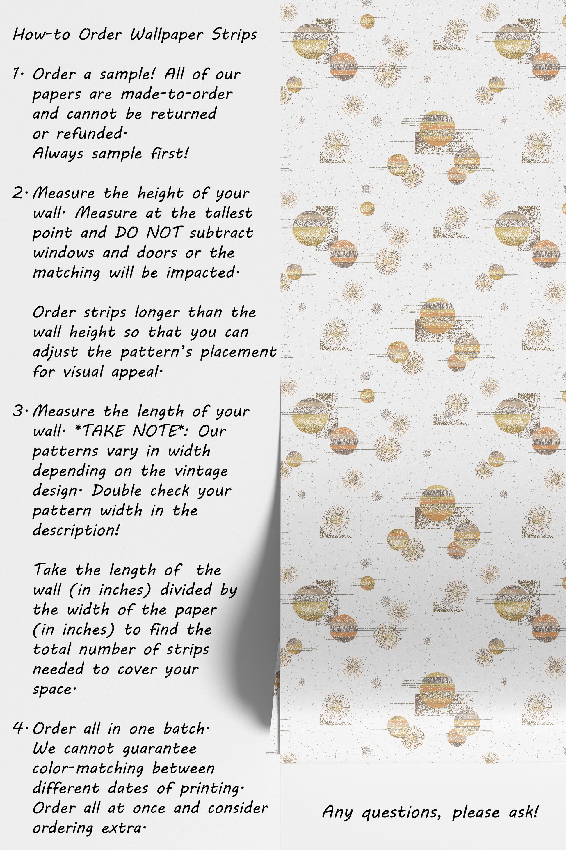 - Order a sample -- all of our wallpaper reproduction are made-to-order and cannot be returned or refunded. Always sample first!