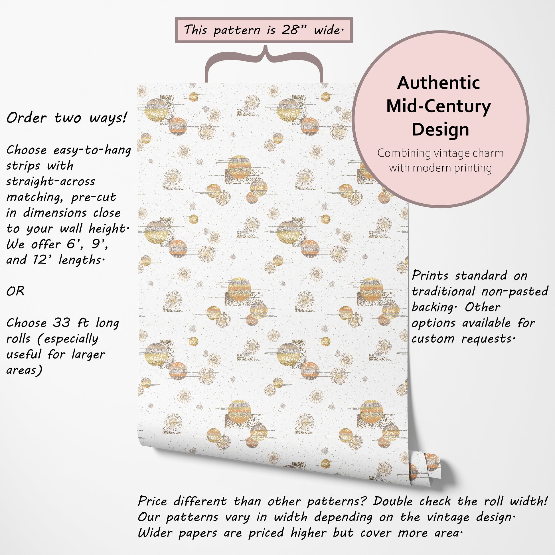 This wallpaper is a reproduction of an authentic 1960s geometric design salvaged as part of the Hannah's Treasures Vintage Wallpaper collection.