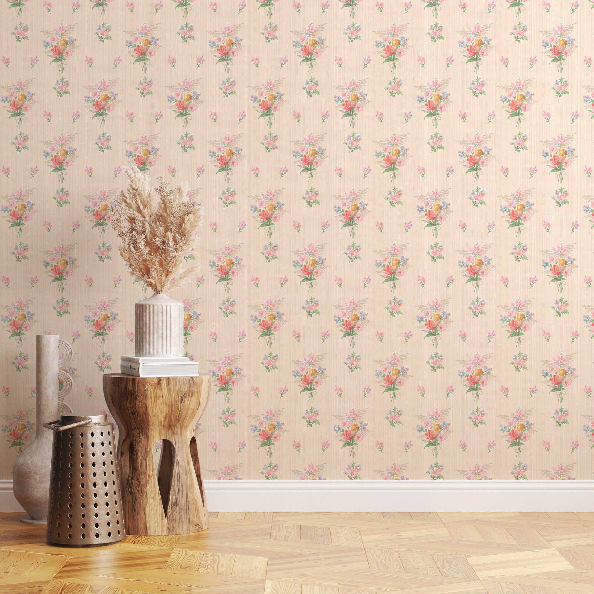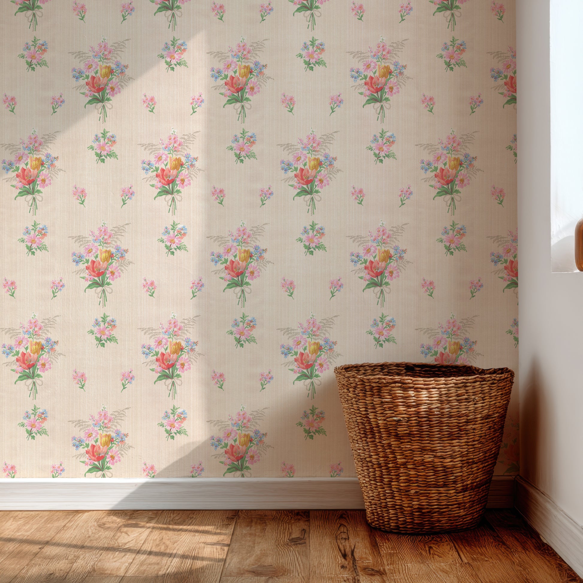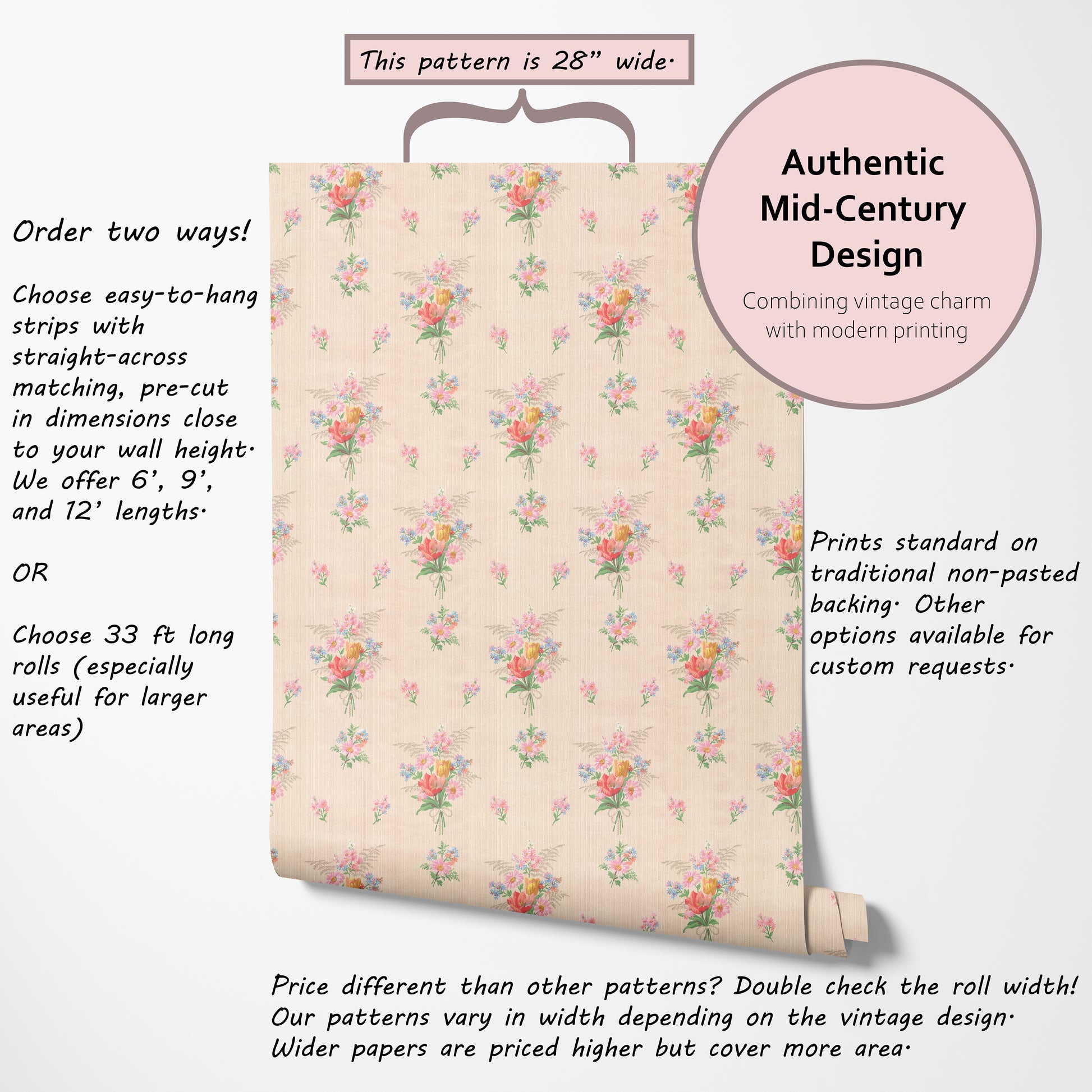 This wallpaper is a reproduction of an authentic 1940s floral design salvaged as part of the Hannah's Treasures Vintage Wallpaper collection.