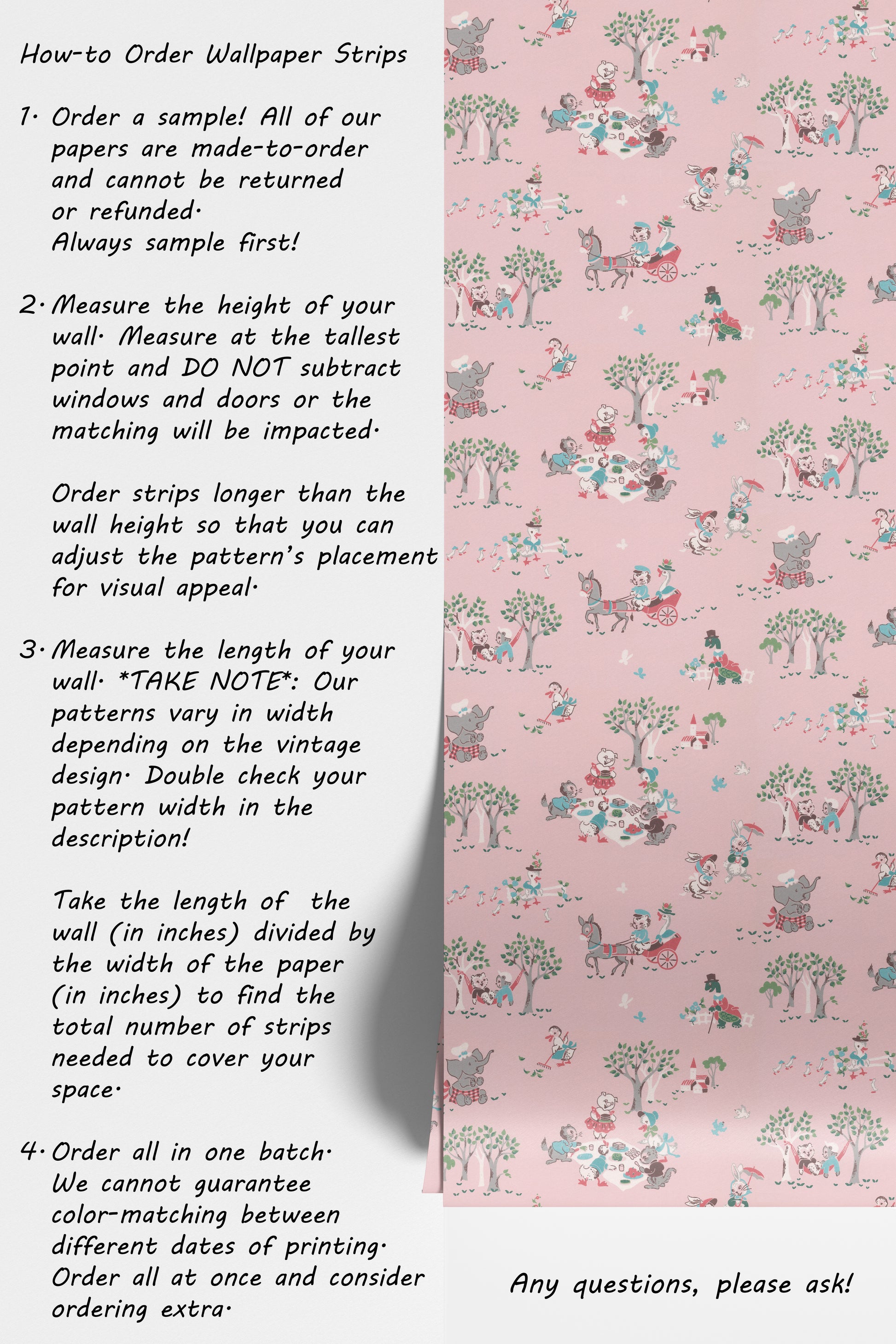Our vintage wallpaper reproductions are printed to order and non-returnable.