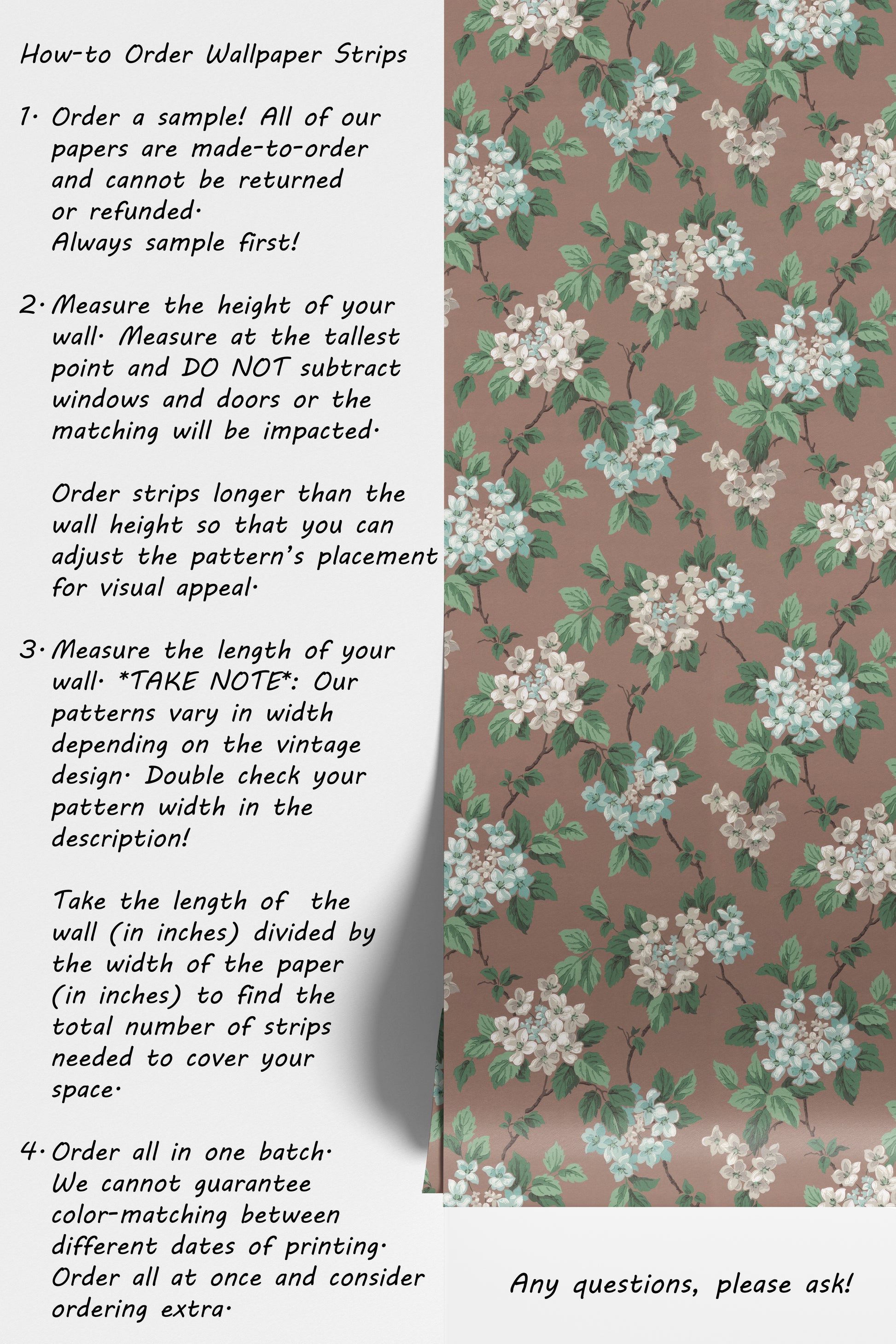 - Order a sample -- all of our wallpaper reproduction are made-to-order and cannot be returned or refunded. Always sample first!