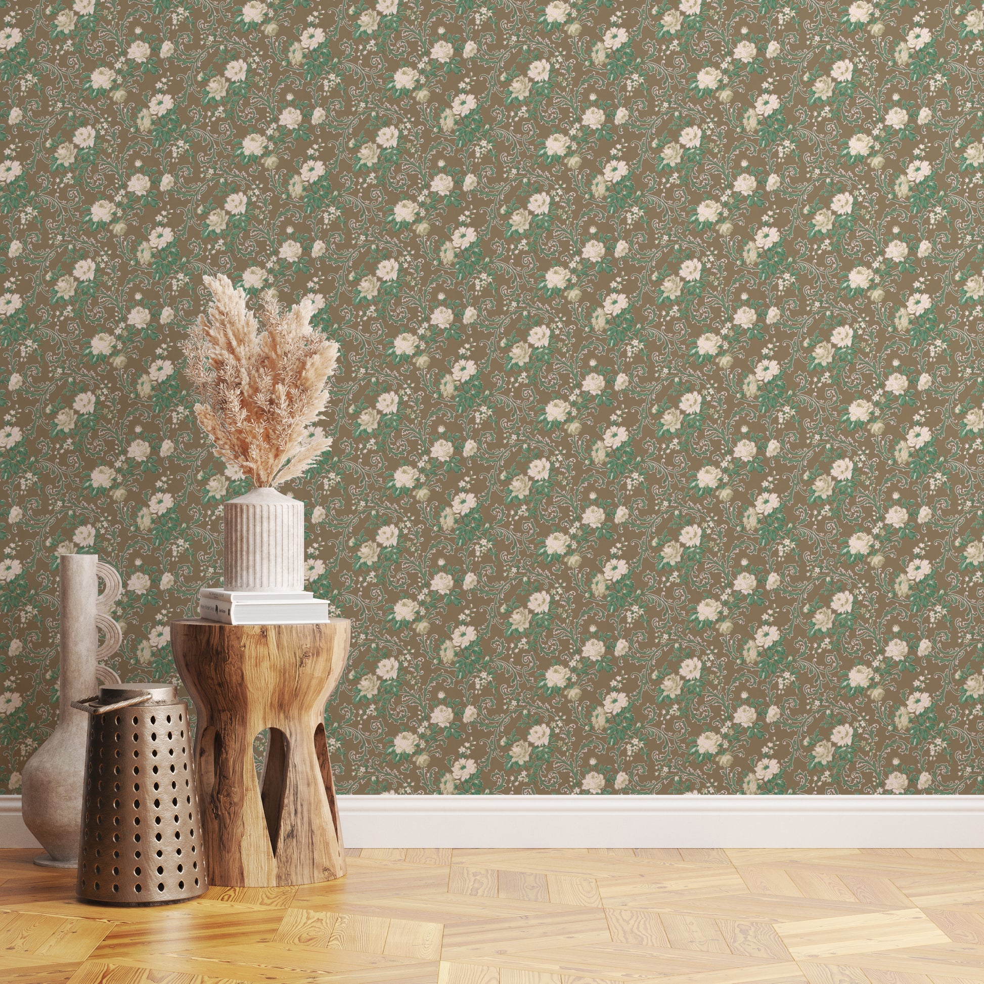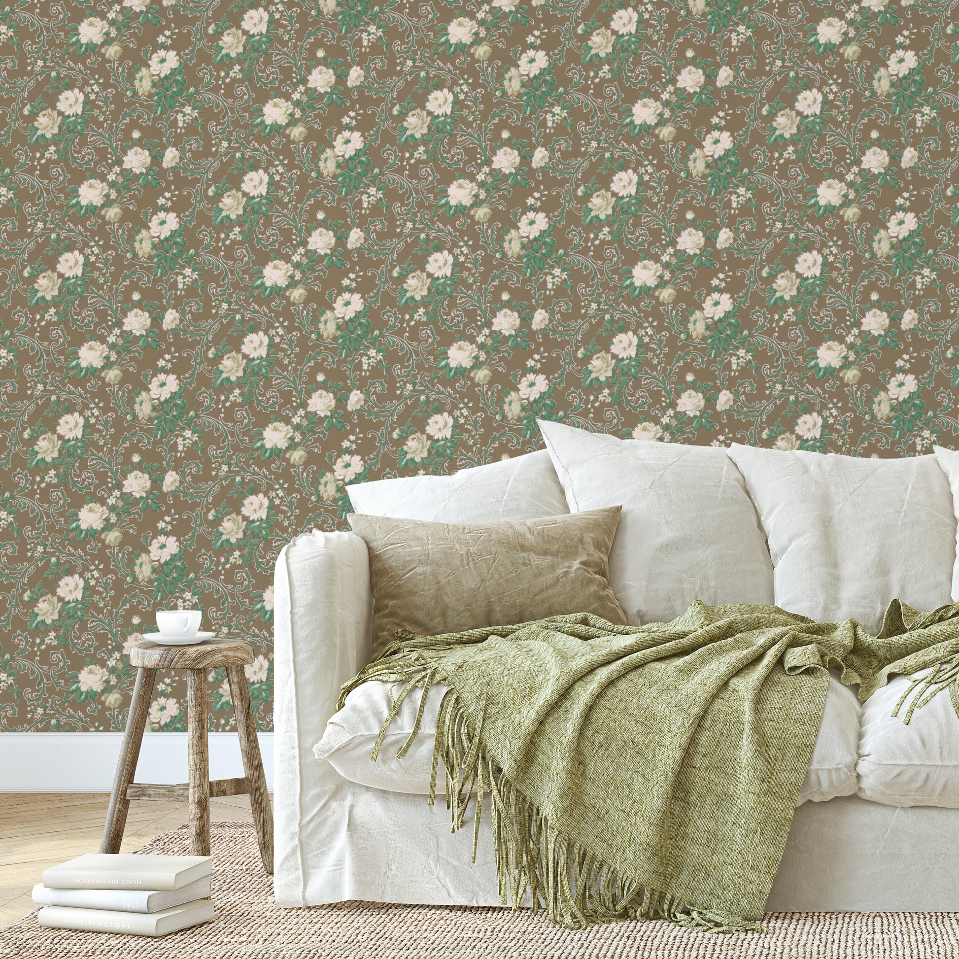 This wallpaper is a reproduction of an authentic early 1900s floral design salvaged as part of the Hannah's Treasures Vintage Wallpaper collection.