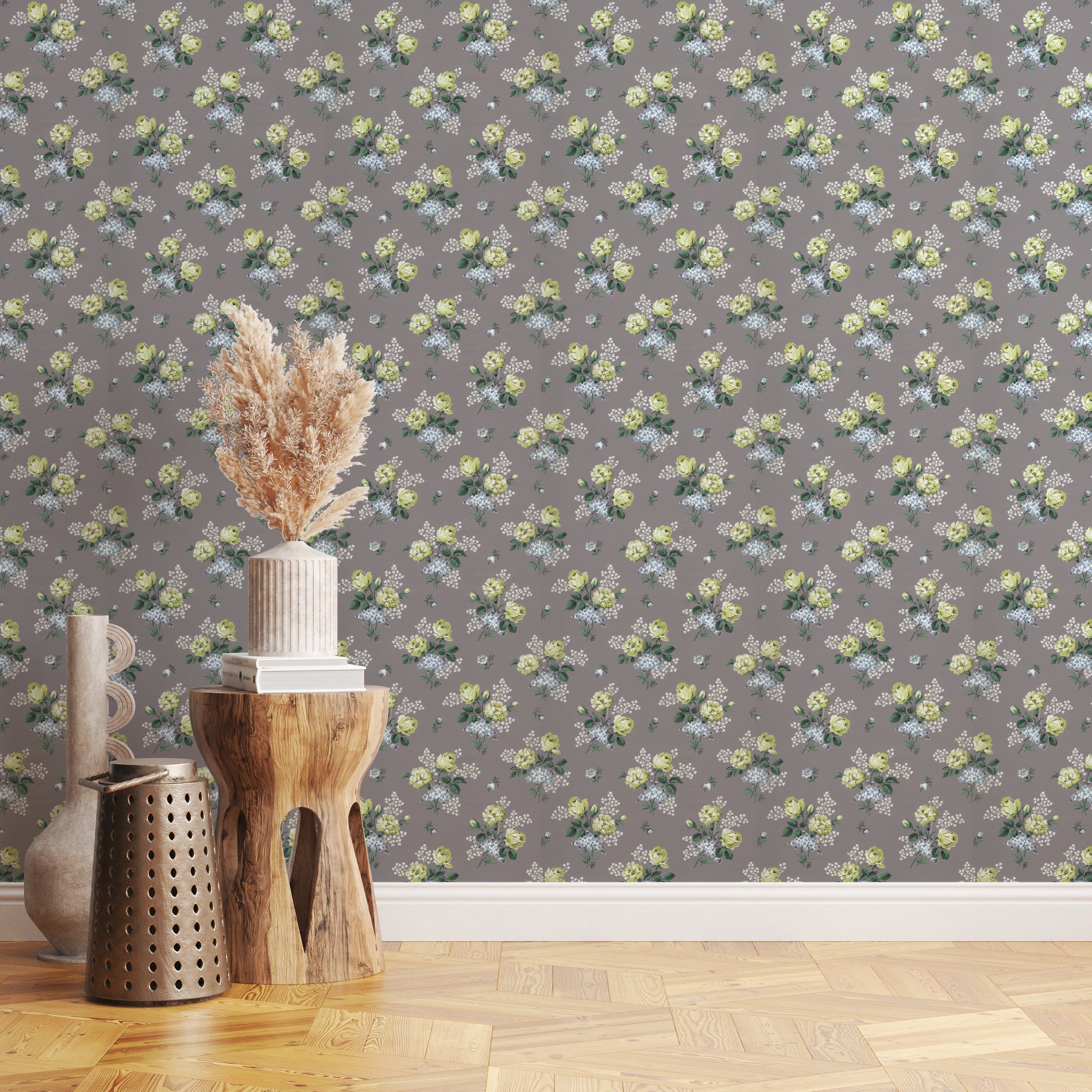 This wallpaper is a reproduction of an authentic 1950s floral design salvaged as part of the Hannah's Treasures Vintage Wallpaper collection.