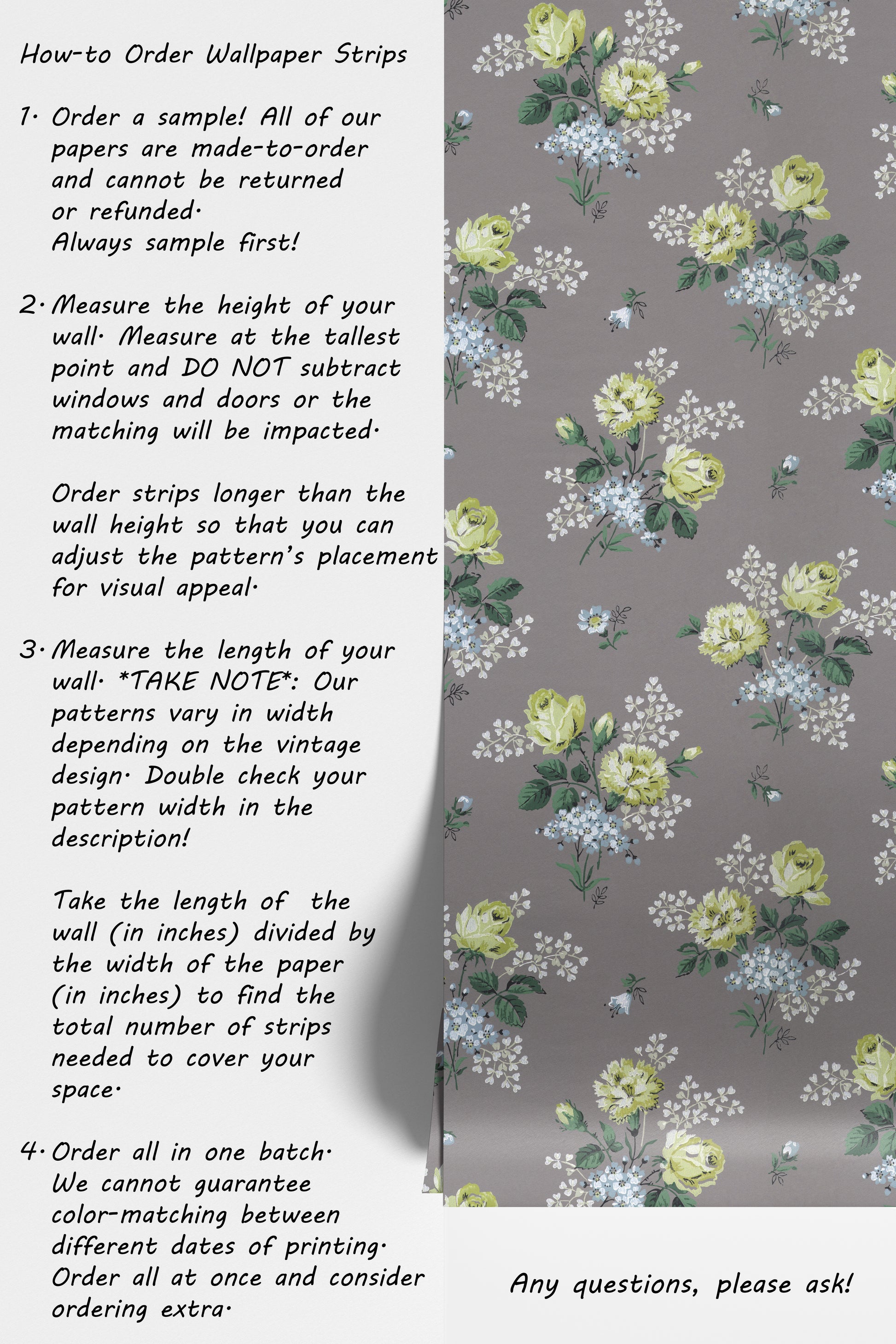 - Order a sample -- all of our wallpaper reproduction are made-to-order and cannot be returned or refunded. Always sample first!