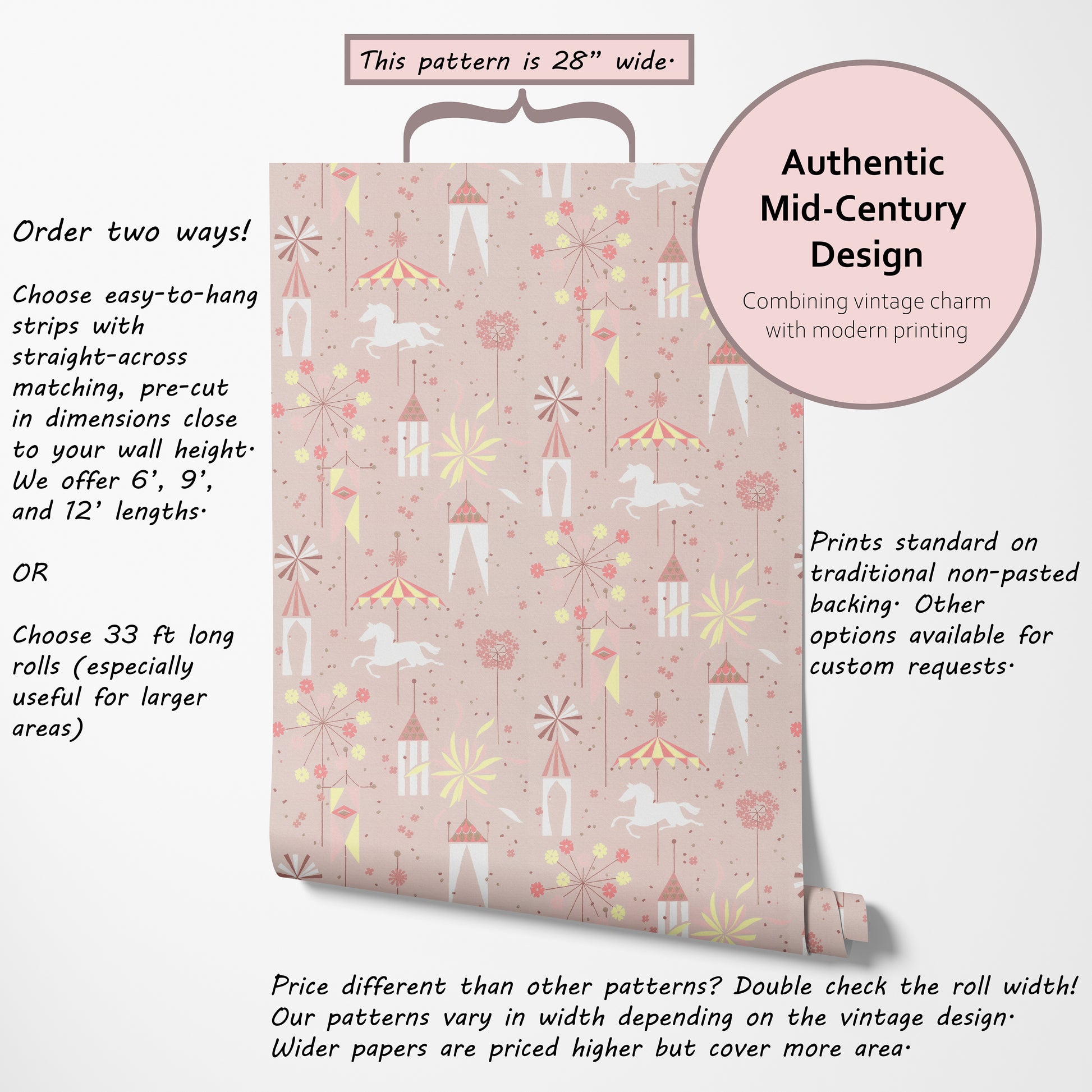 Our vintage wallpaper reproductions are printed to order and non-returnable.