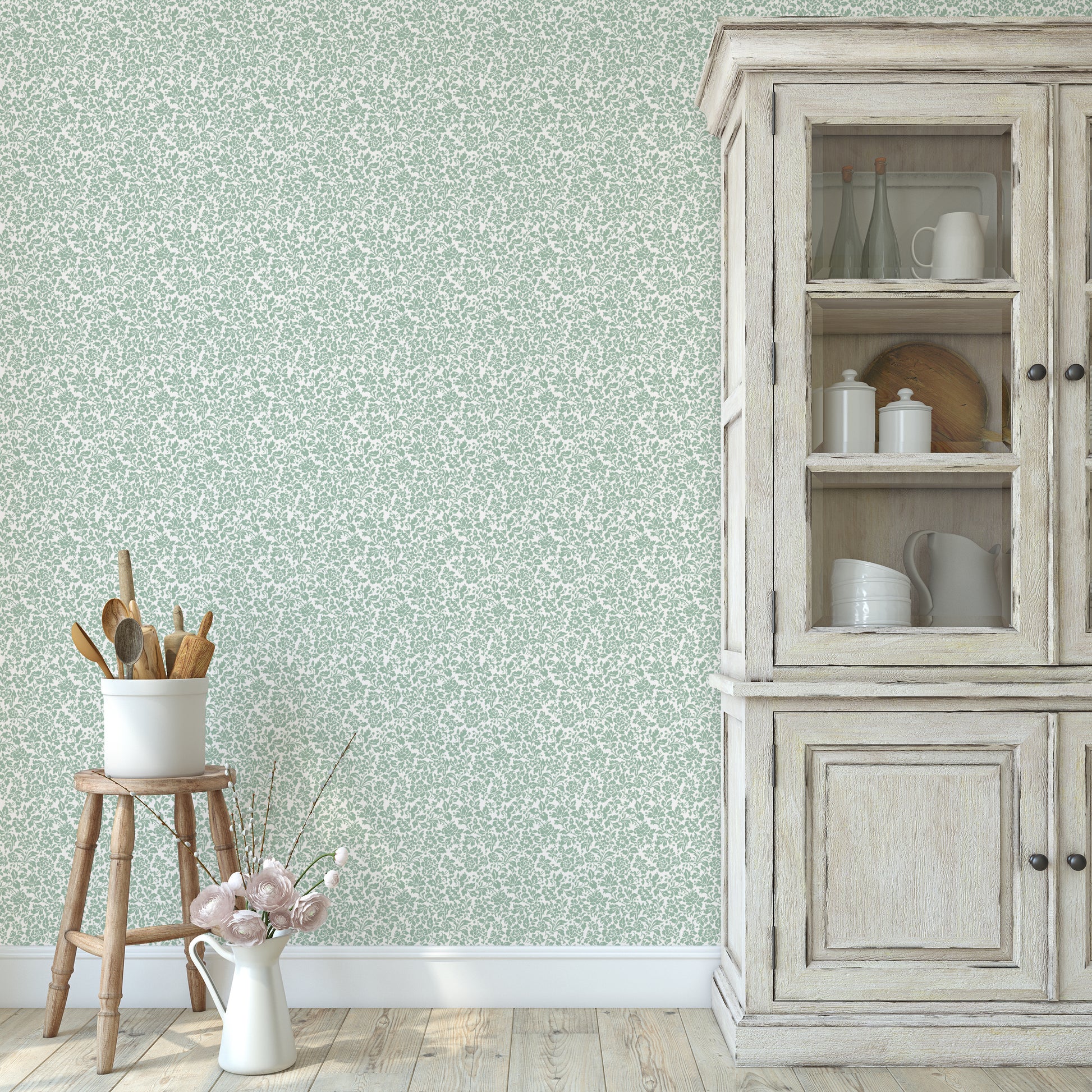 This wallpaper is a vintage-inspired Hannah's Treasures Design. It is not a direct reproduction of a vintage pattern, but rather an inspired adaptation.