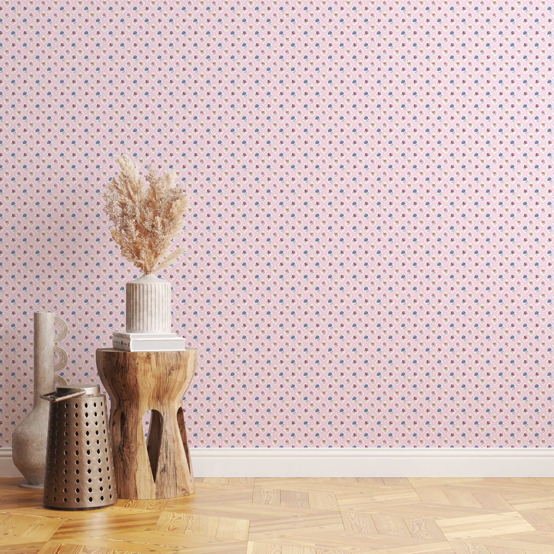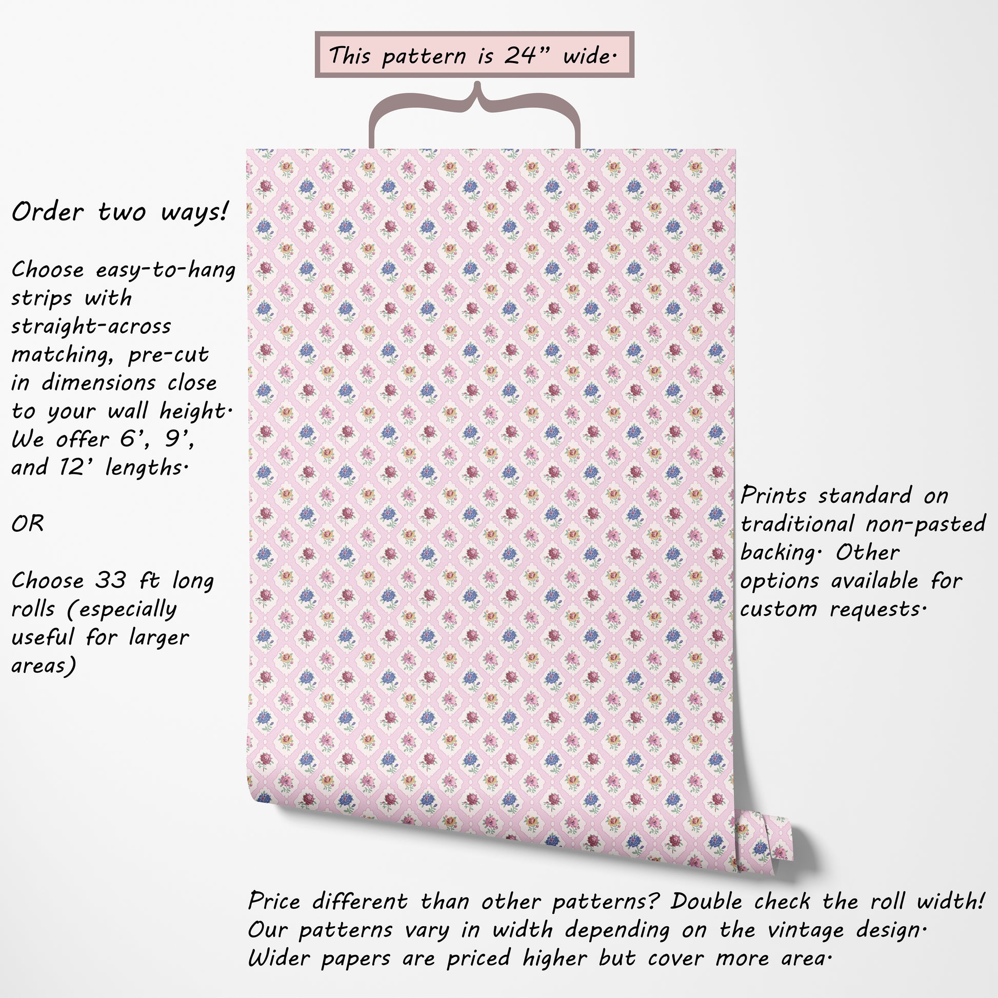 This wallpaper is a vintage-inspired Hannah's Treasures Design. It is not a direct reproduction of a vintage pattern, but rather an inspired adaptation.