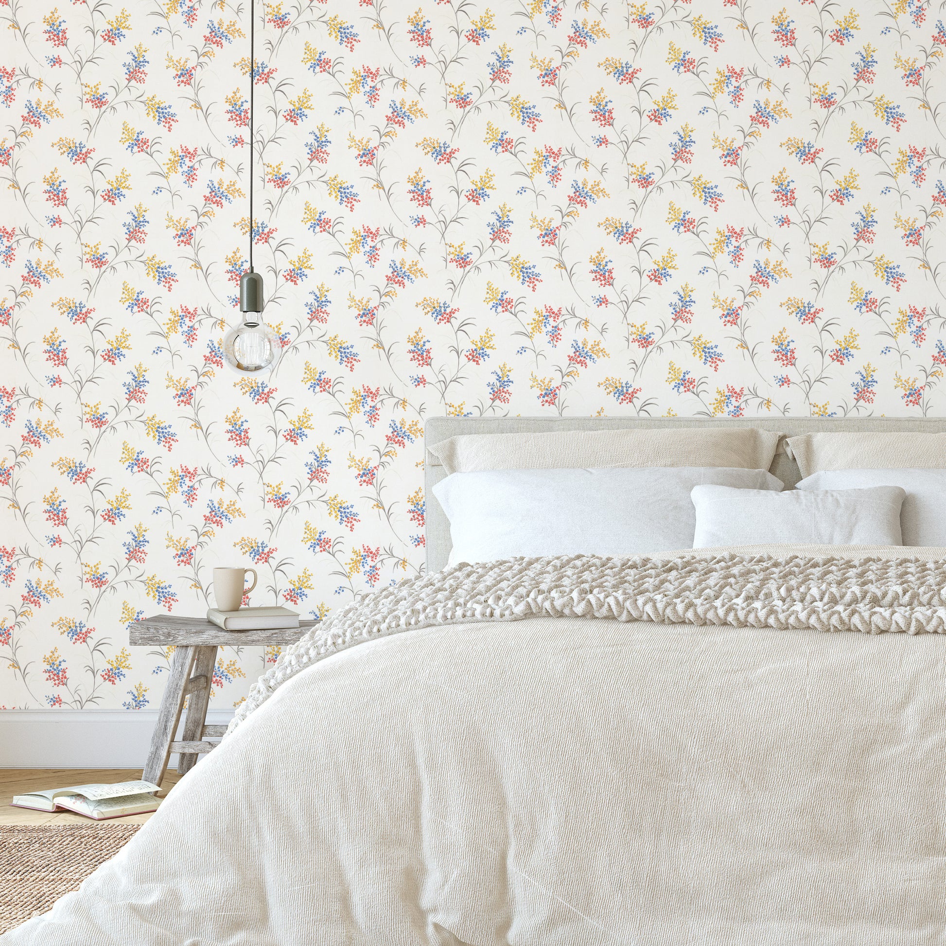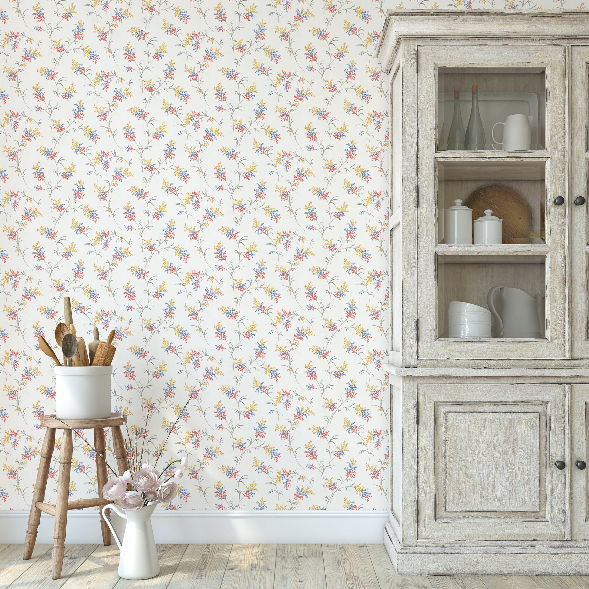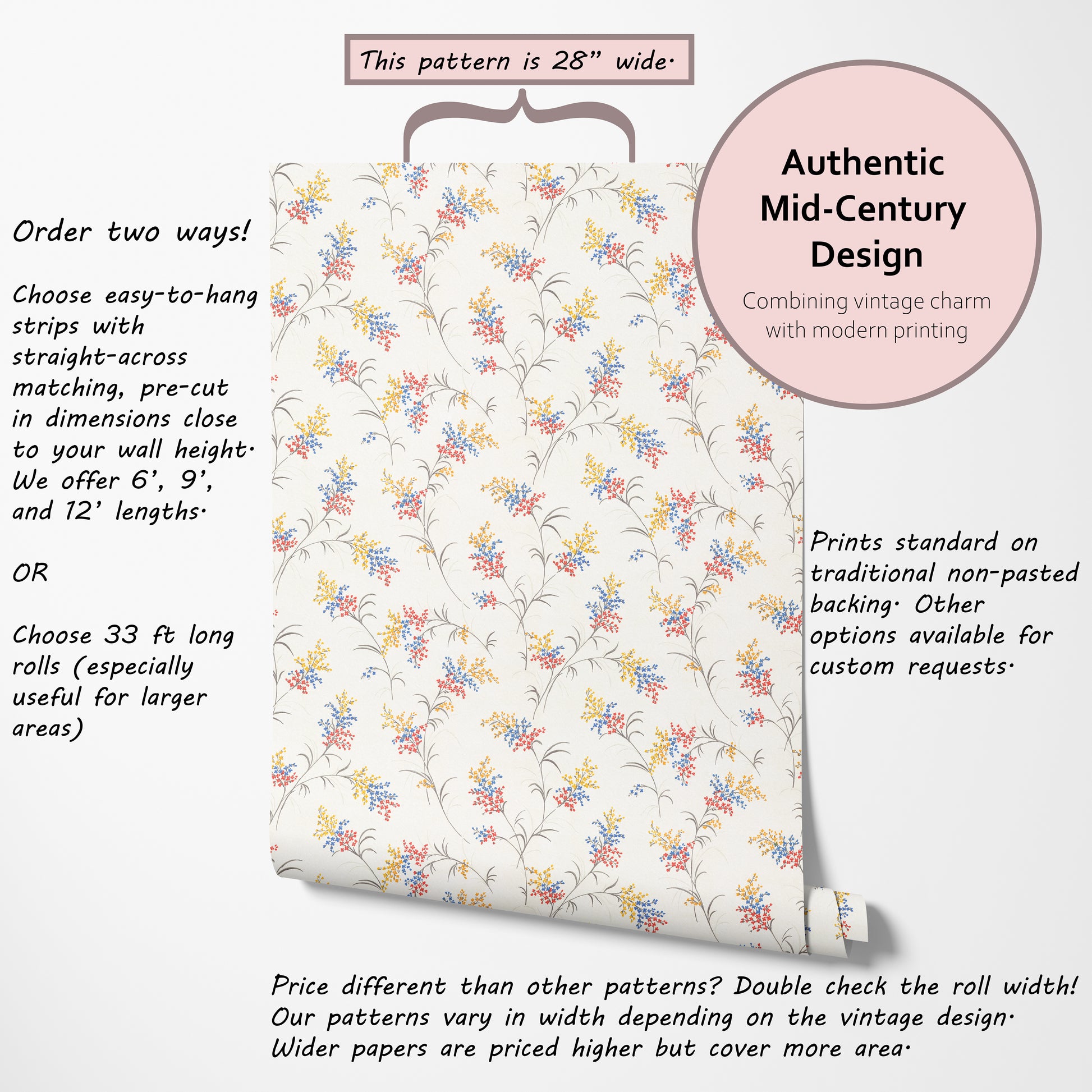 This wallpaper is a reproduction of an authentic 1940s floral design salvaged as part of the Hannah's Treasures Vintage Wallpaper collection.