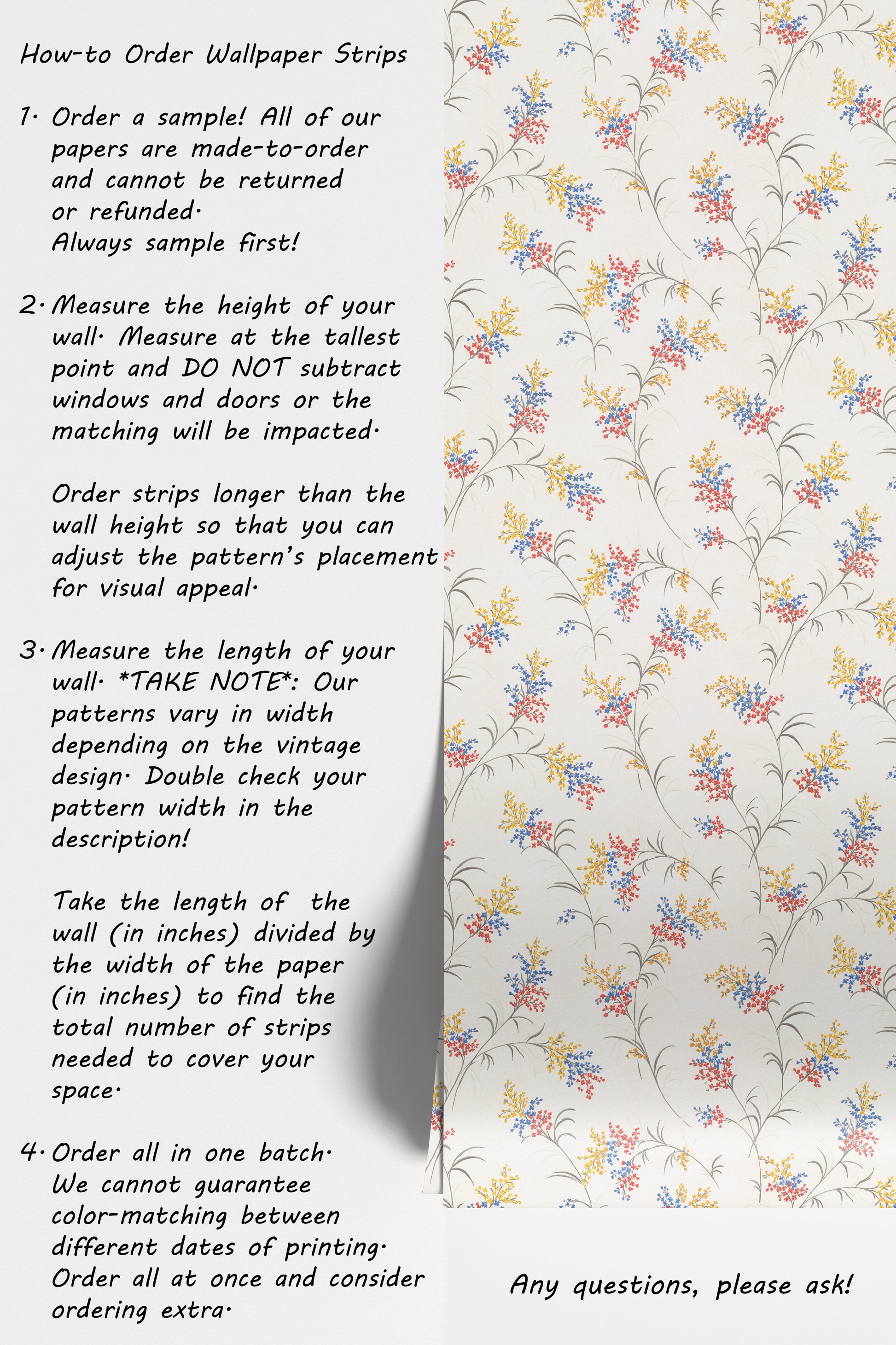 - Order a sample -- all of our wallpaper reproduction are made-to-order and cannot be returned or refunded. Always sample first!