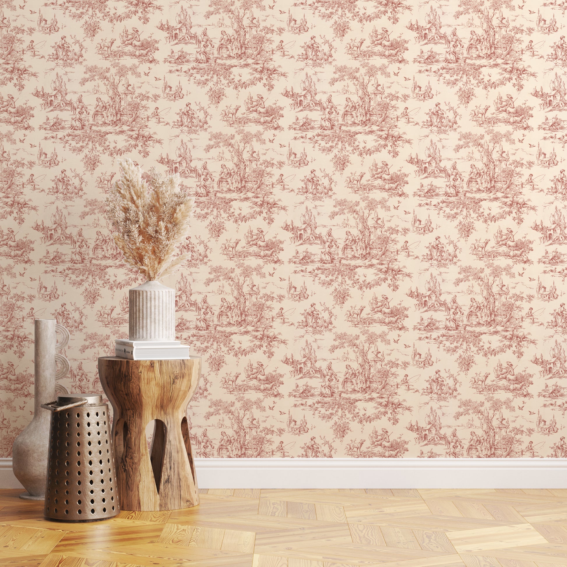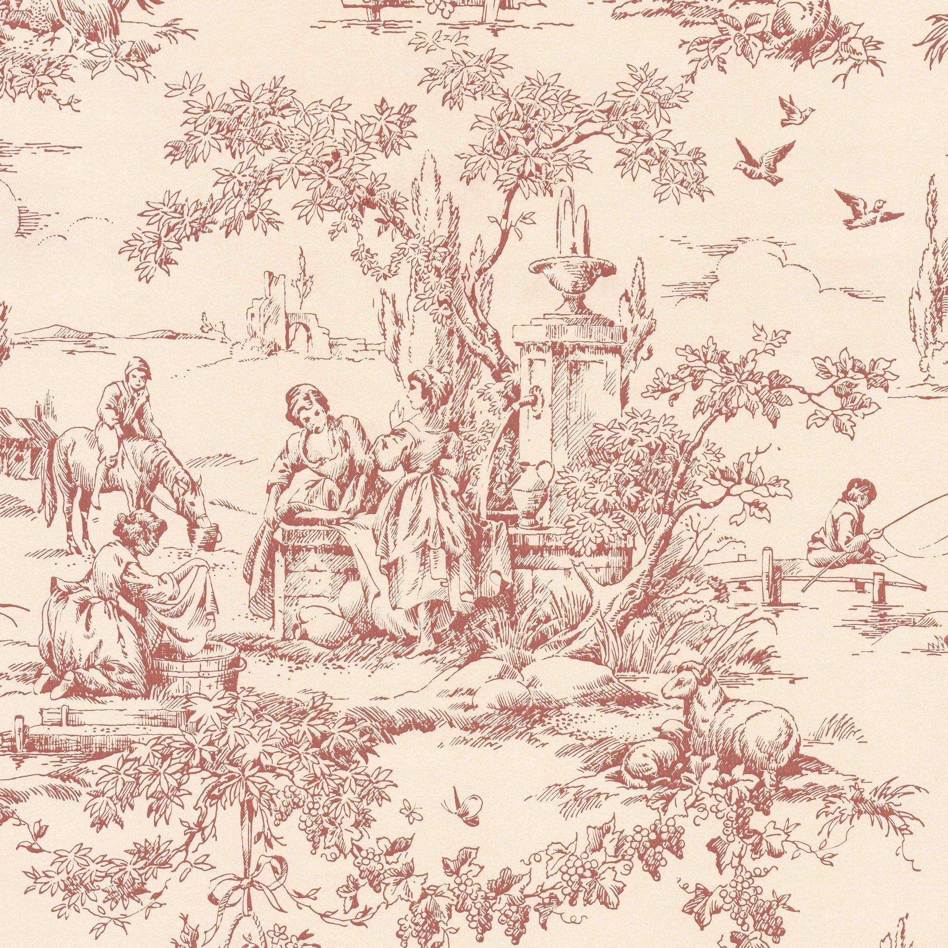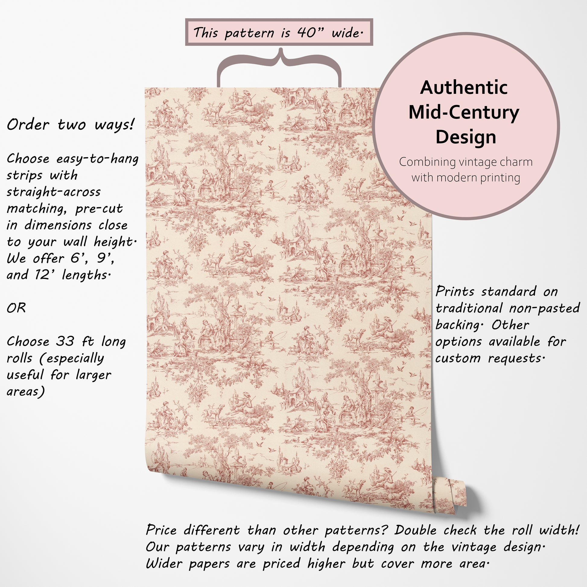 This wallpaper is a reproduction of an authentic 1940s toile design salvaged as part of the Hannah's Treasures Vintage Wallpaper collection.