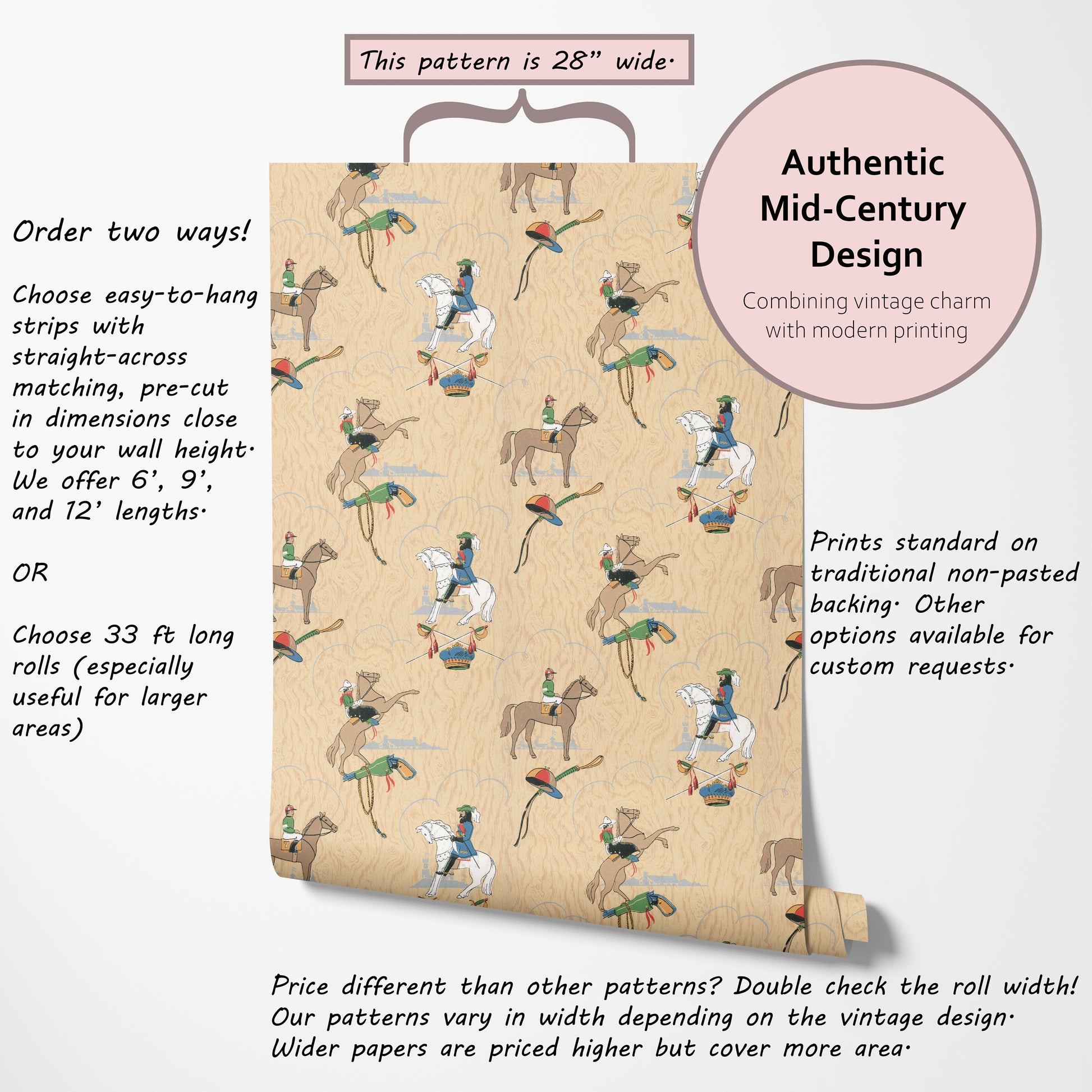 Our vintage wallpaper reproductions are printed to order and non-returnable.