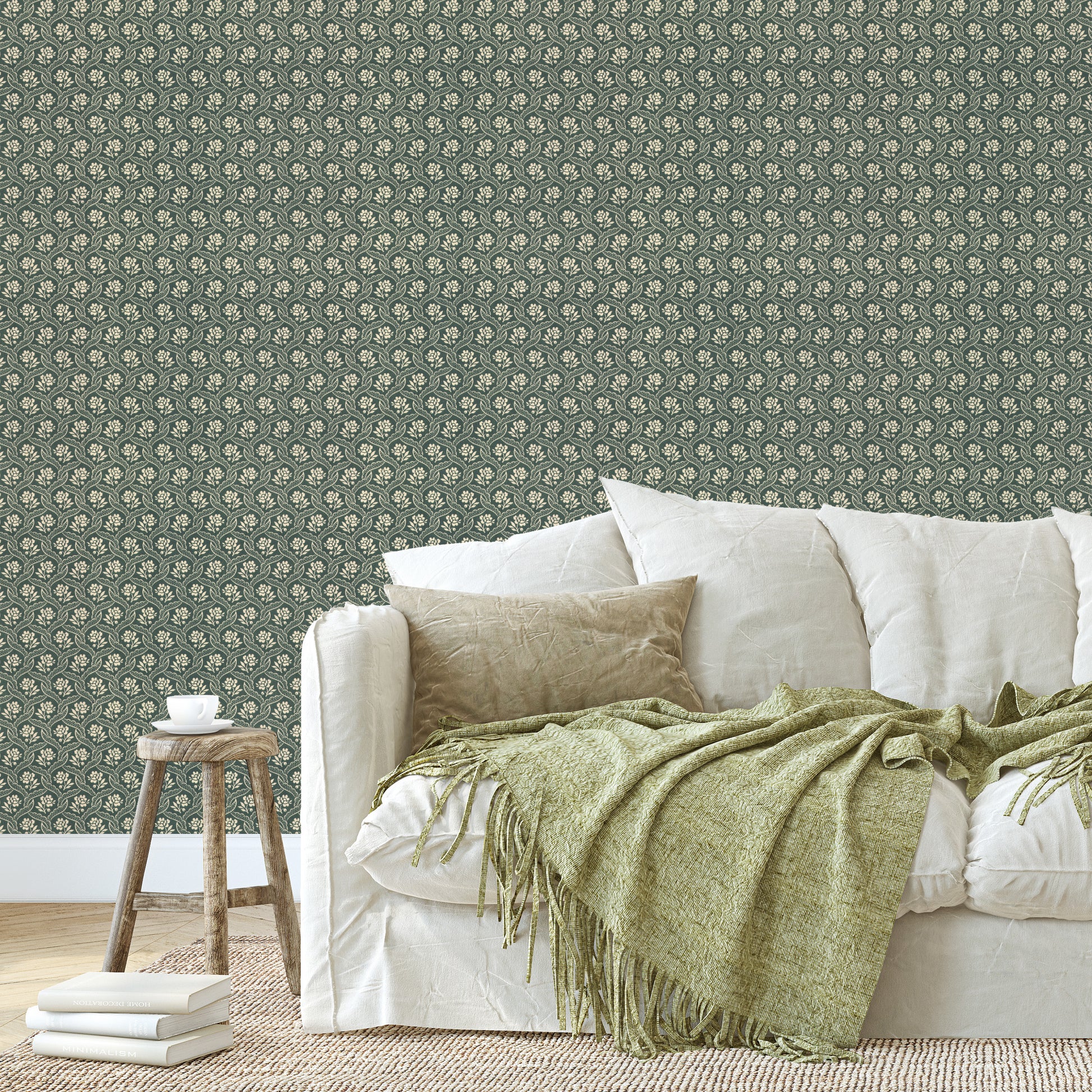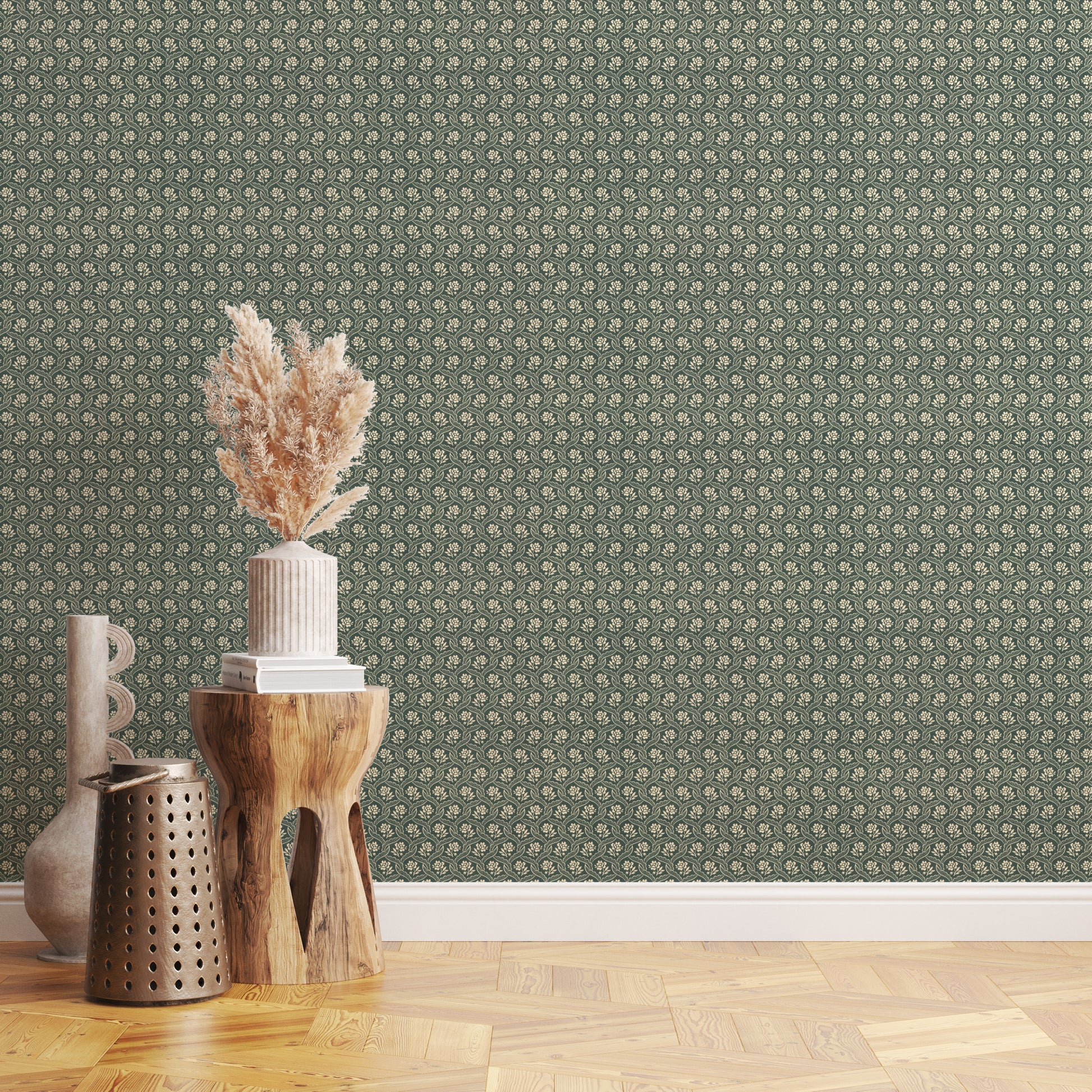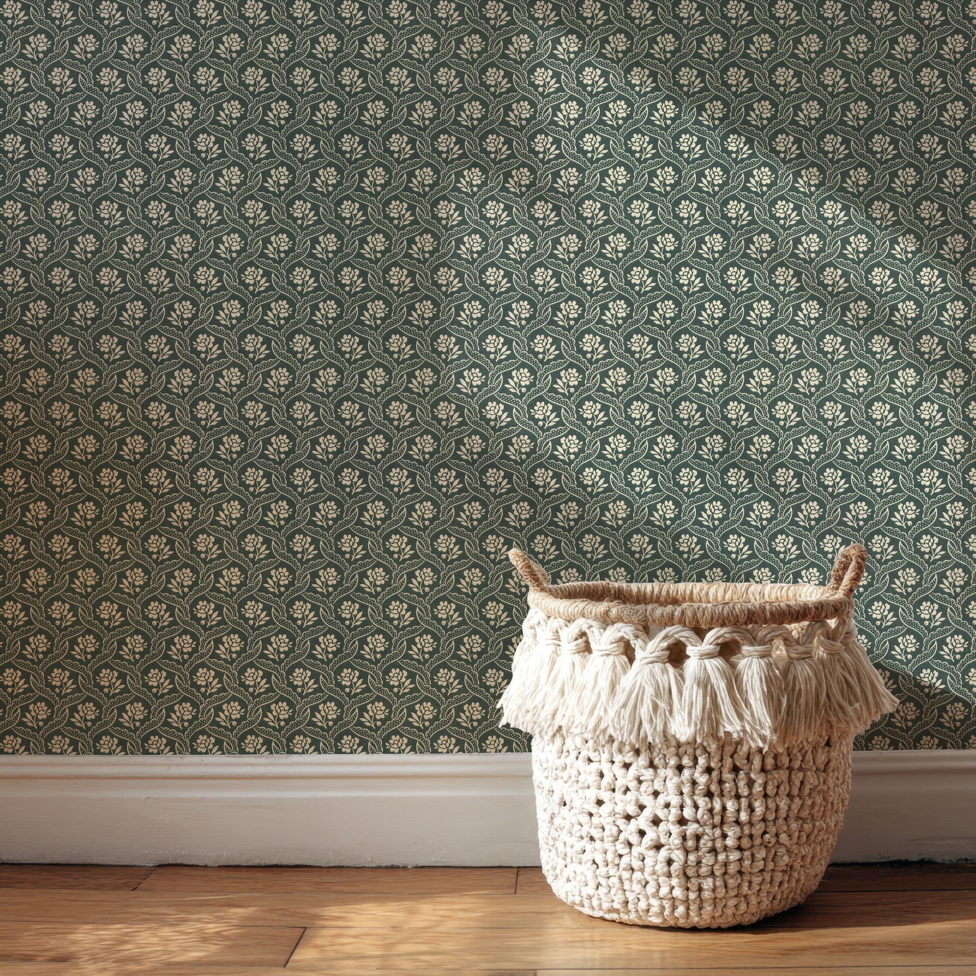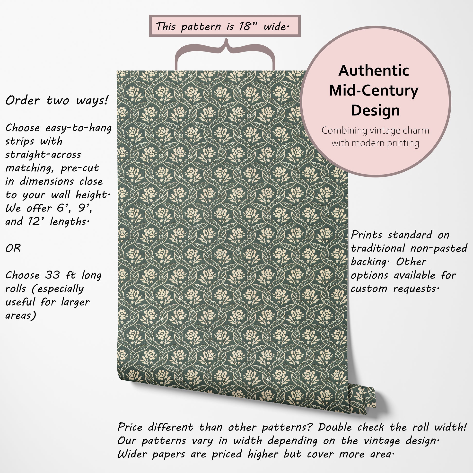 This wallpaper is a reproduction of an authentic 1940s floral design salvaged as part of the Hannah's Treasures Vintage Wallpaper collection.