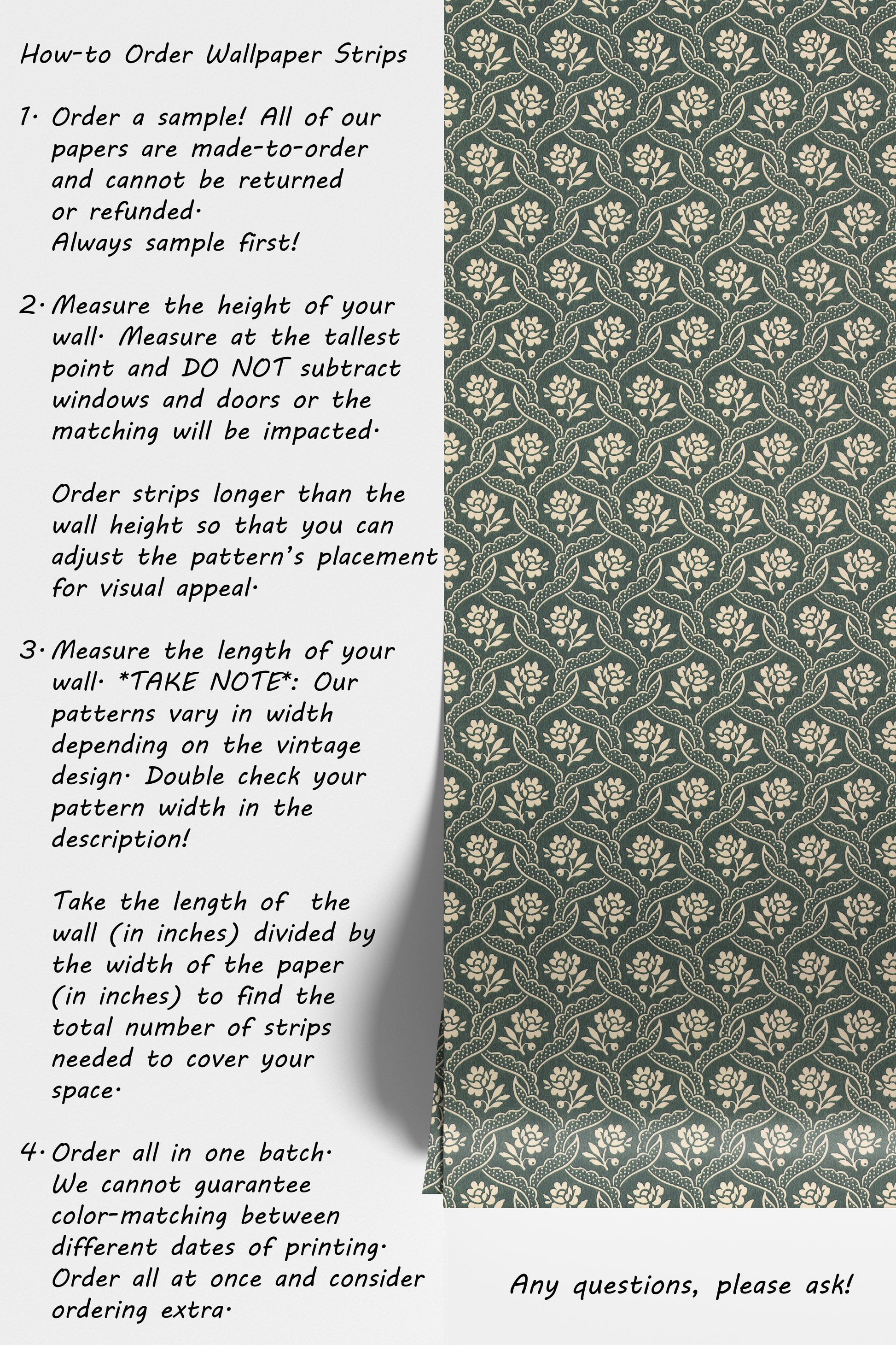 - Order a sample -- all of our wallpaper reproduction are made-to-order and cannot be returned or refunded. Always sample first!