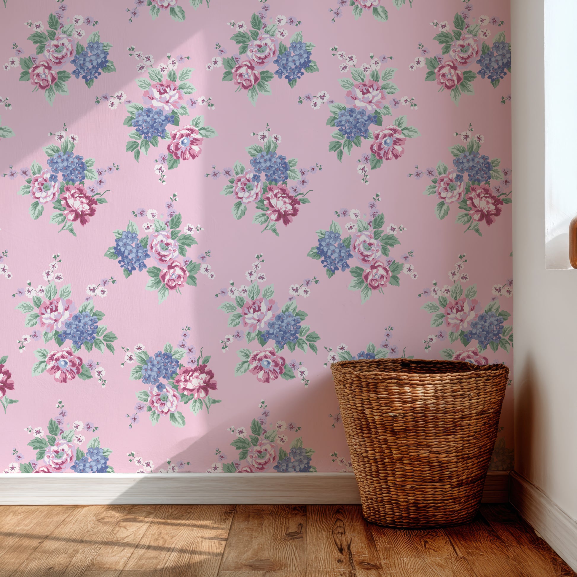 Large Romantic Roses and Hydrangeas Pink Hannah's Treasures Designs