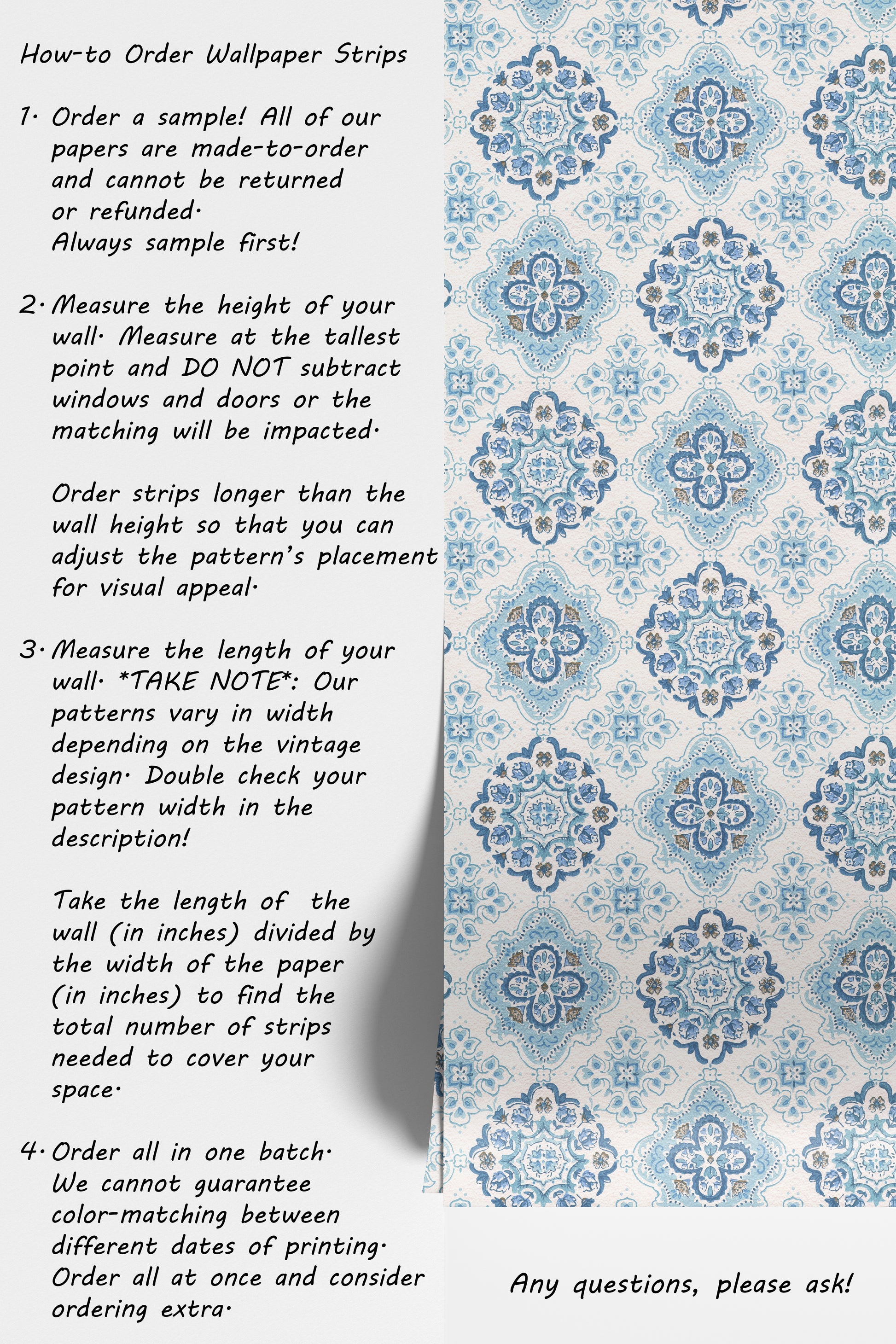 - Order a sample -- all of our wallpaper reproduction are made-to-order and cannot be returned or refunded. Always sample first!