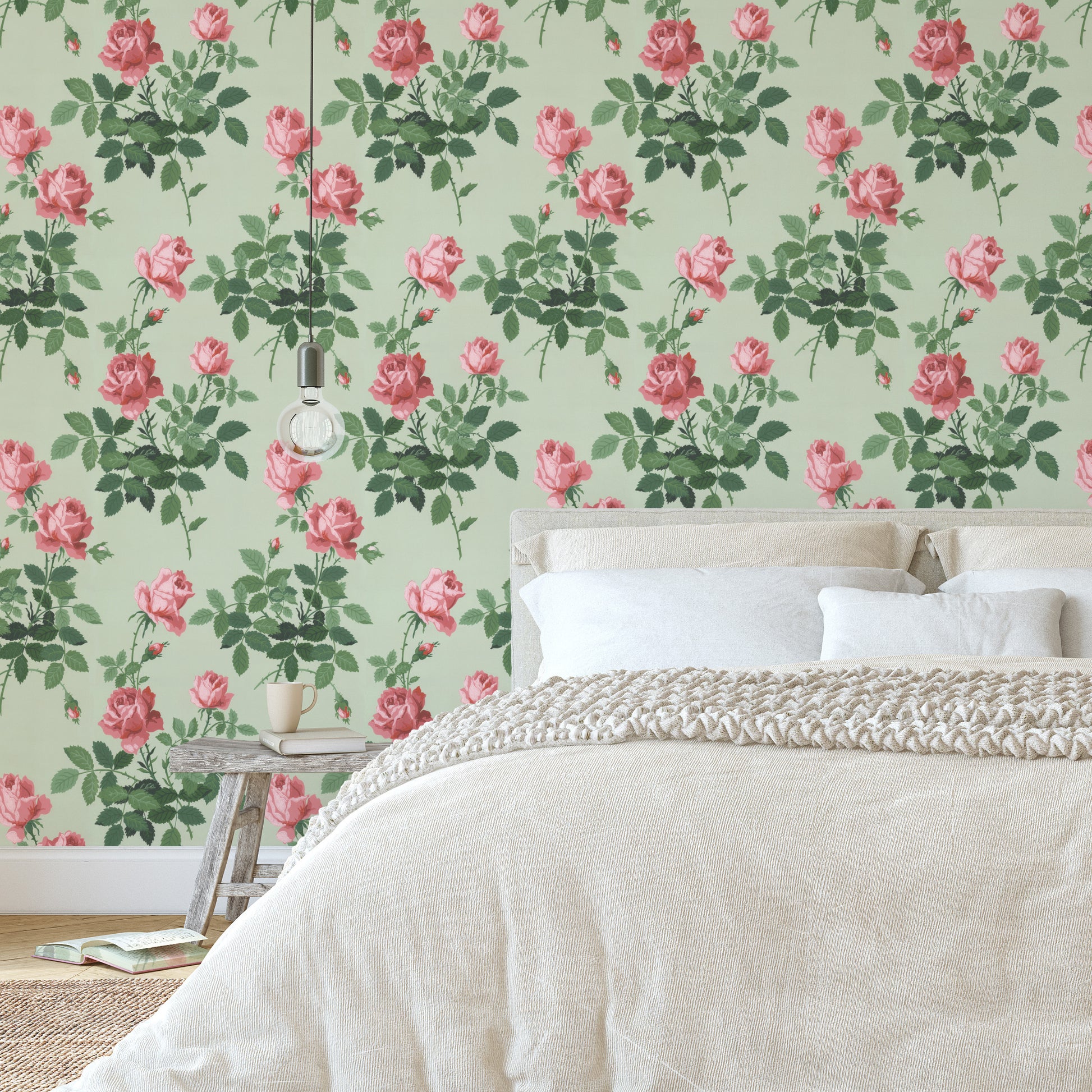 This wallpaper is a reproduction of an authentic 1950s floral design salvaged as part of the Hannah's Treasures Vintage Wallpaper collection.