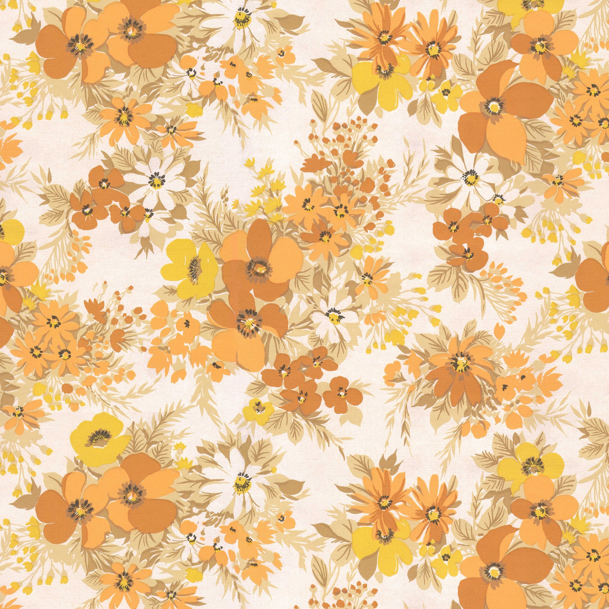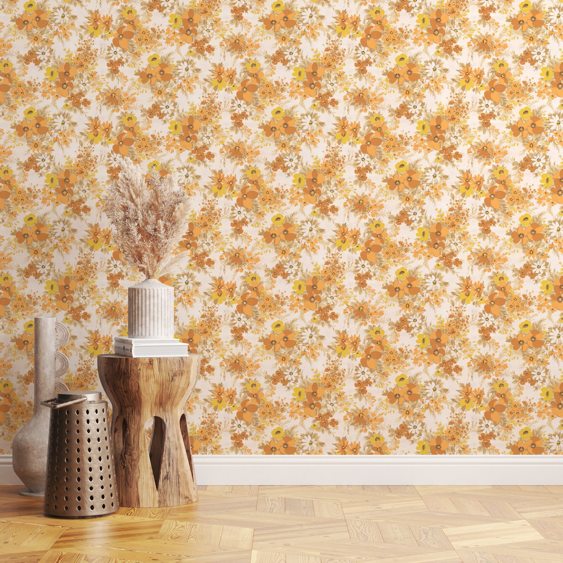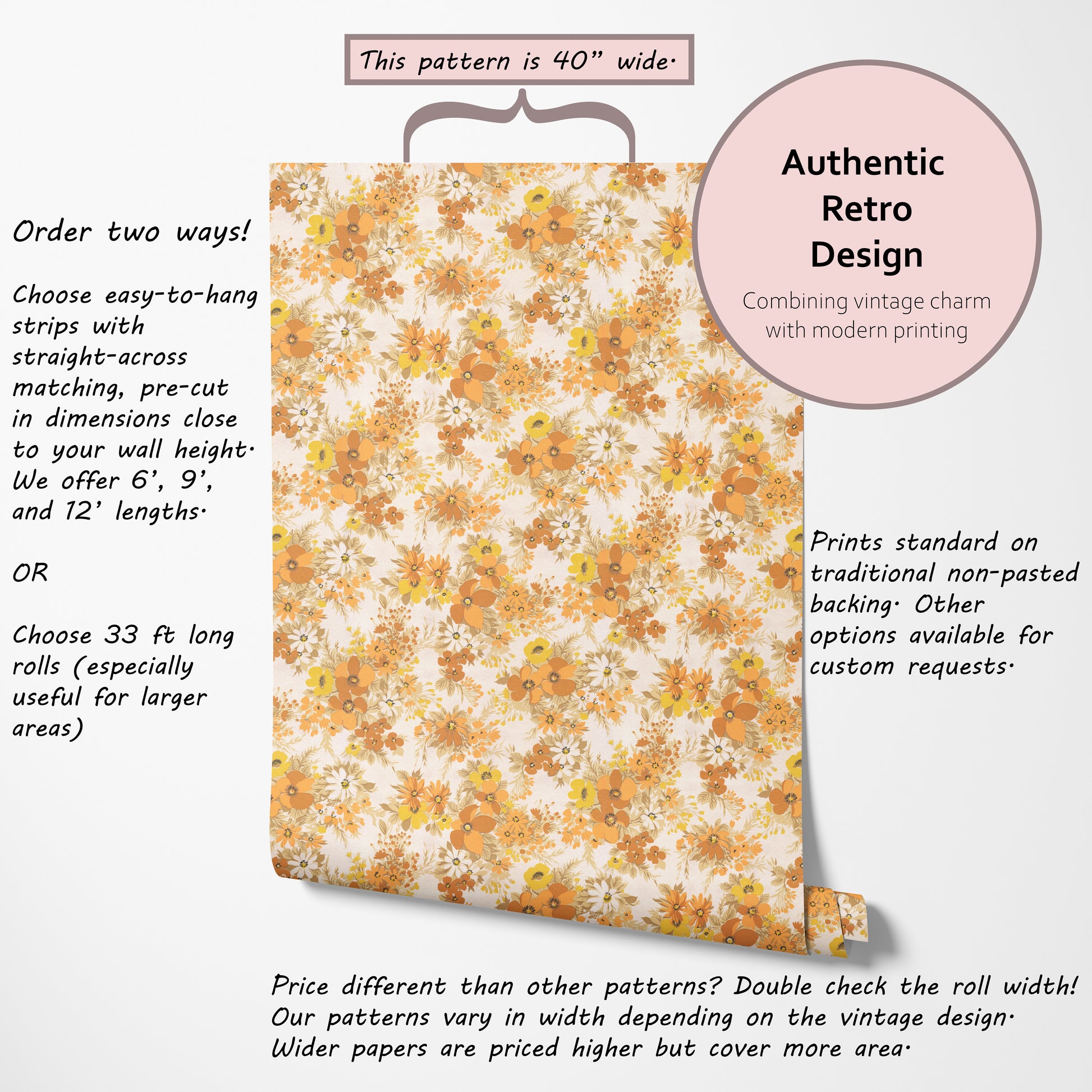 This wallpaper is a reproduction of an authentic 1960s floral design salvaged as part of the Hannah's Treasures Vintage Wallpaper collection.