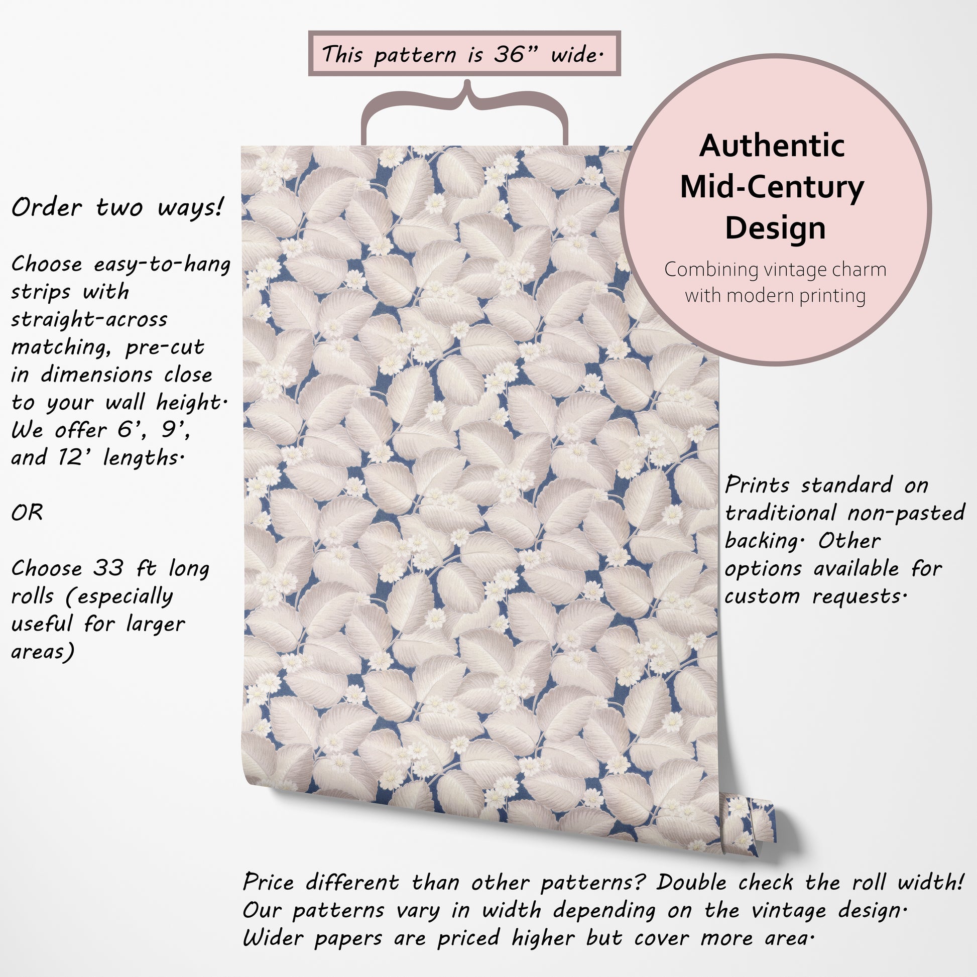 This wallpaper is a reproduction of an authentic 1950s botanical design salvaged as part of the Hannah's Treasures Vintage Wallpaper collection.