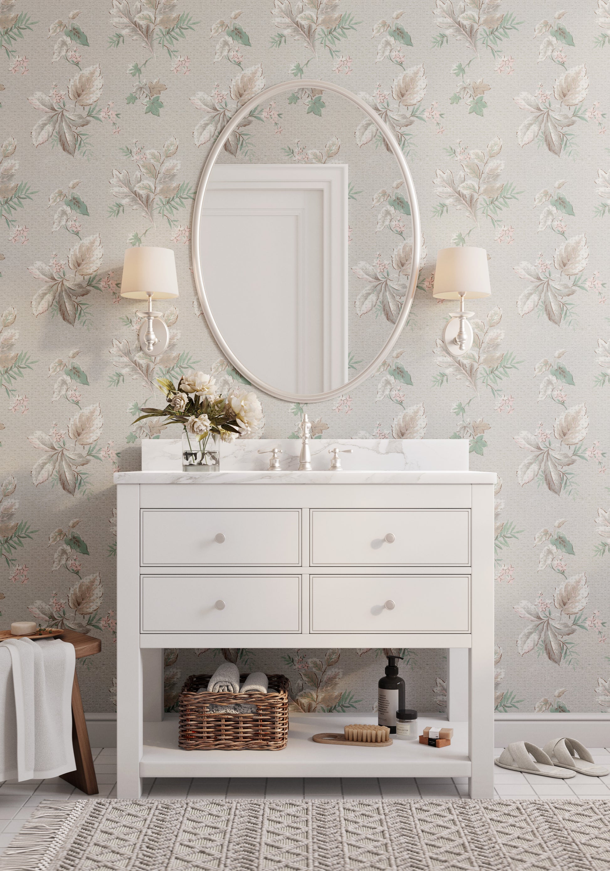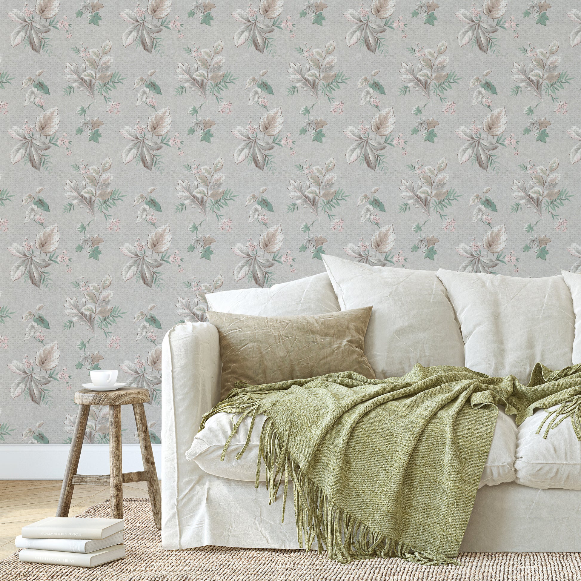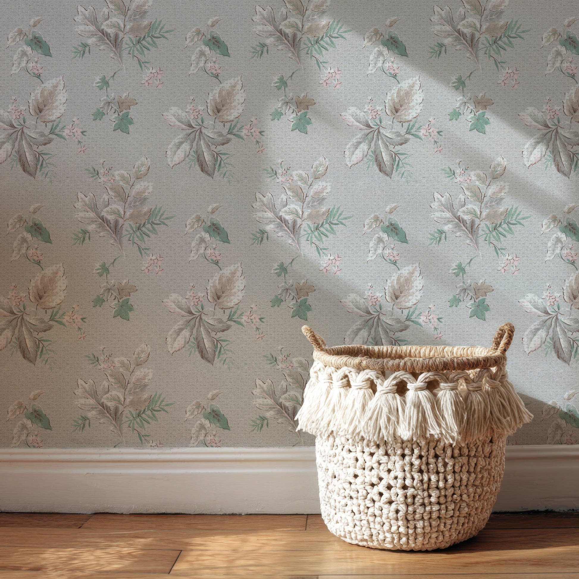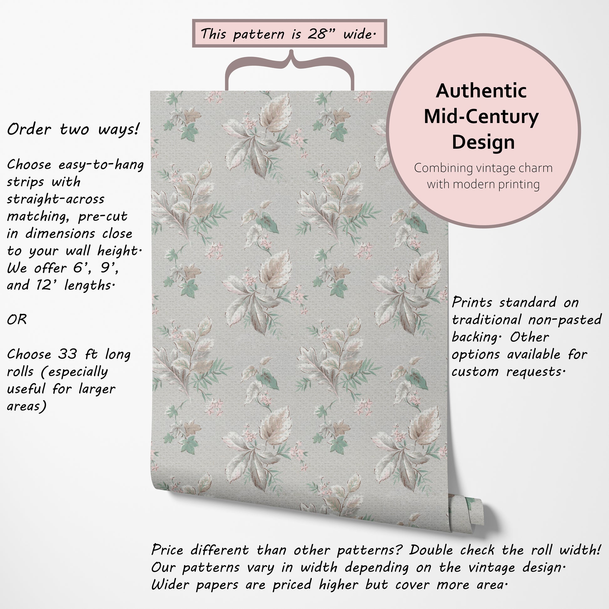This wallpaper is a reproduction of an authentic 1950s botanical design salvaged as part of the Hannah's Treasures Vintage Wallpaper collection.