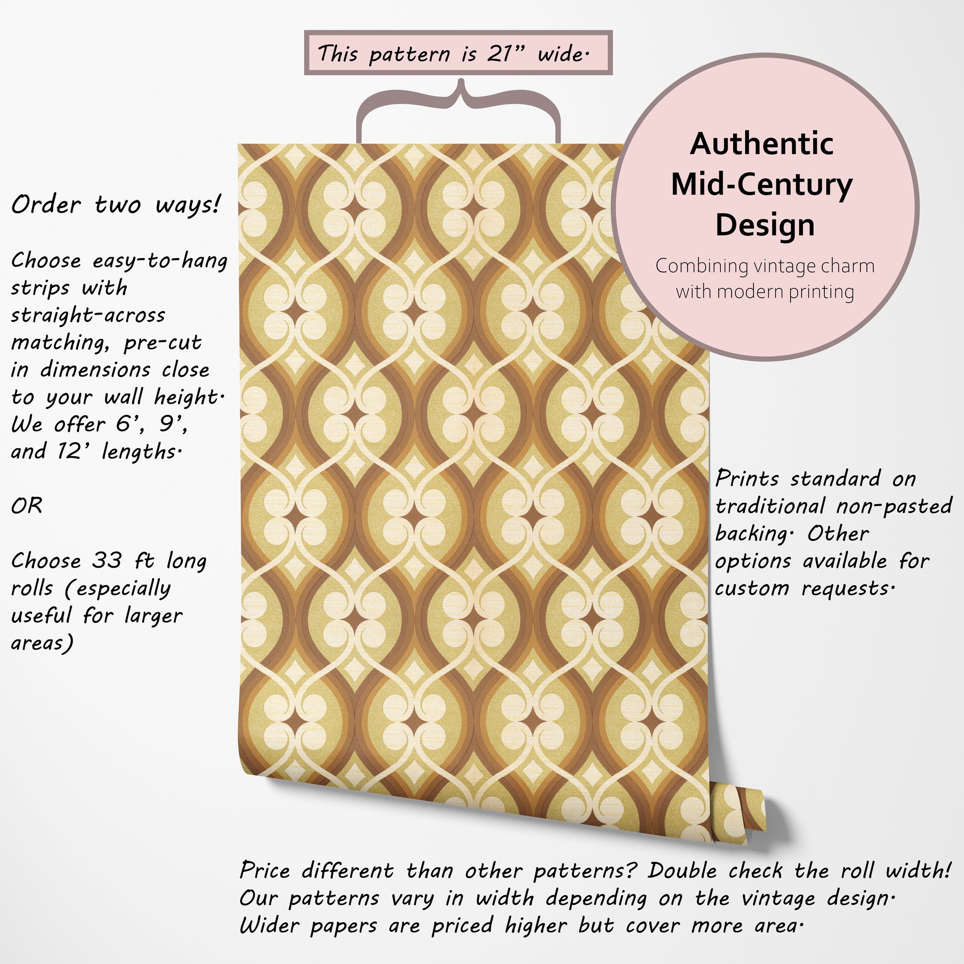 This wallpaper is a reproduction of an authentic 1960s geometric design salvaged as part of the Hannah's Treasures Vintage Wallpaper collection.