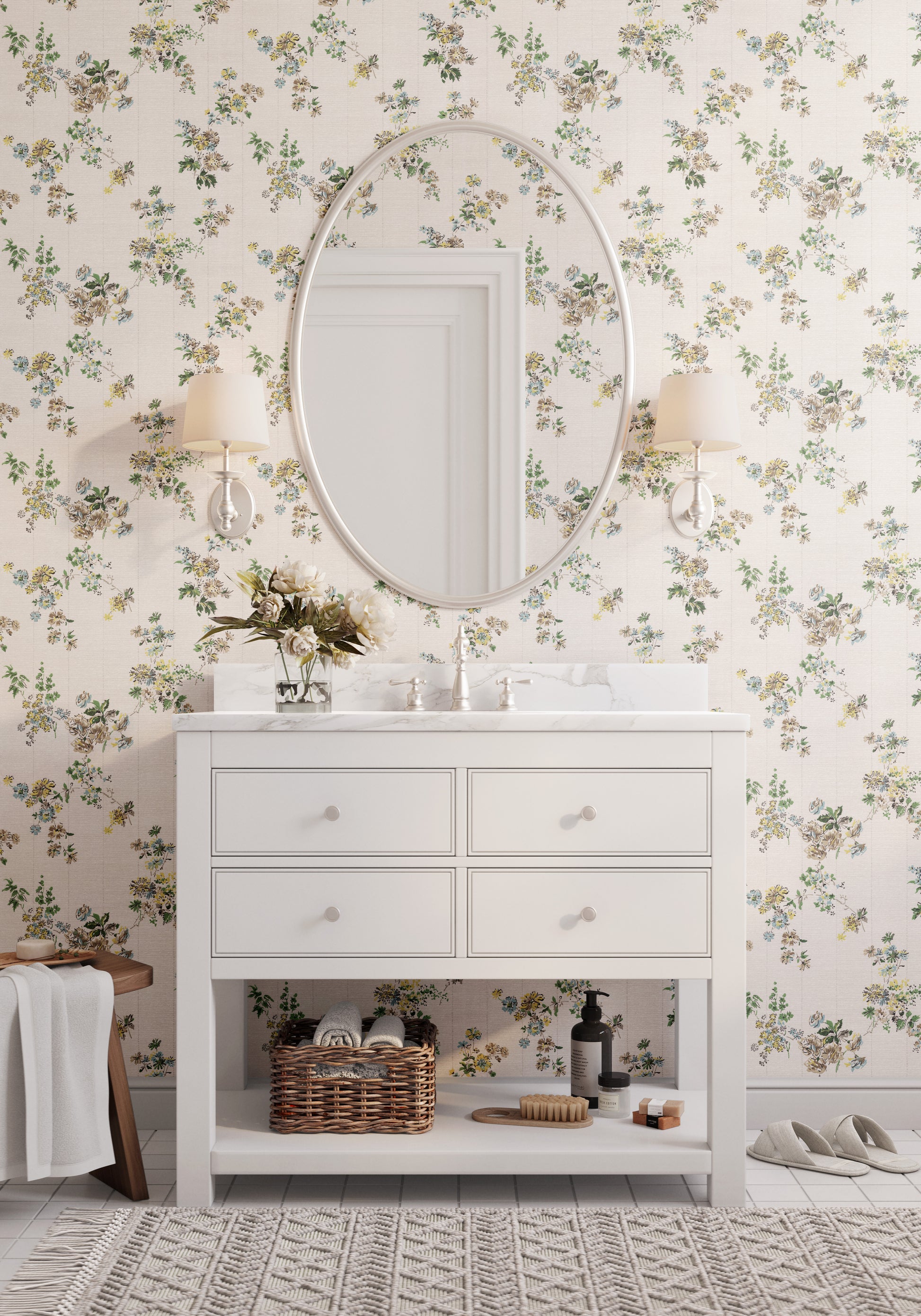 This wallpaper is a reproduction of an authentic 1950s floral design salvaged as part of the Hannah's Treasures Vintage Wallpaper collection.