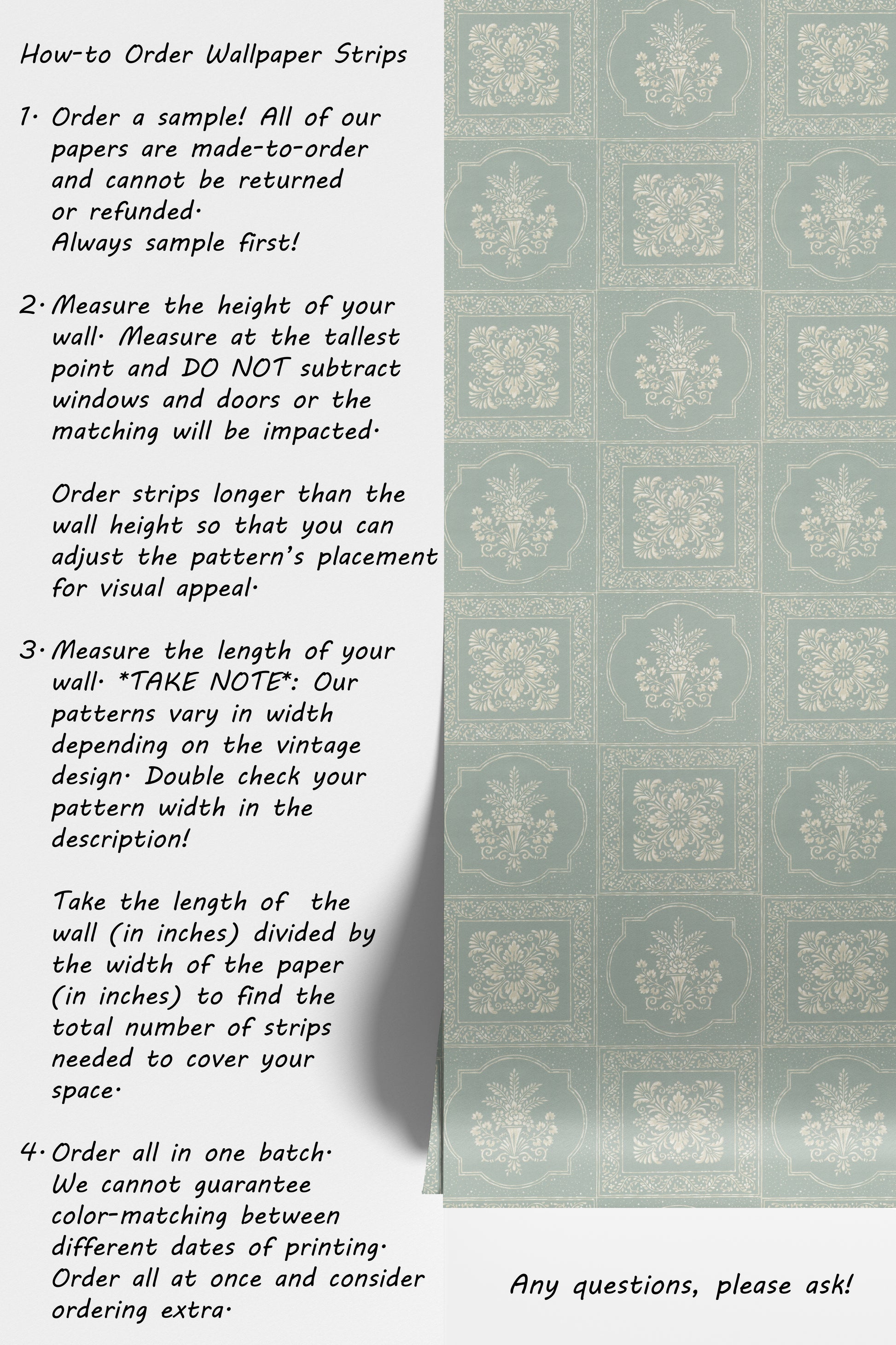 - Order a sample -- all of our wallpaper reproduction are made-to-order and cannot be returned or refunded. Always sample first!