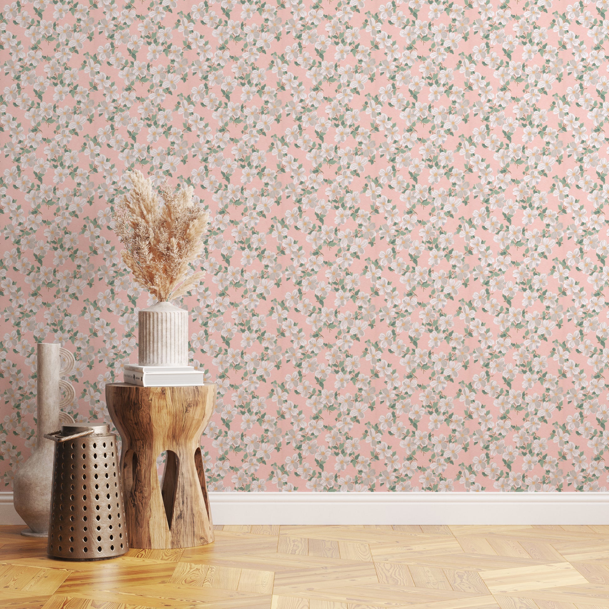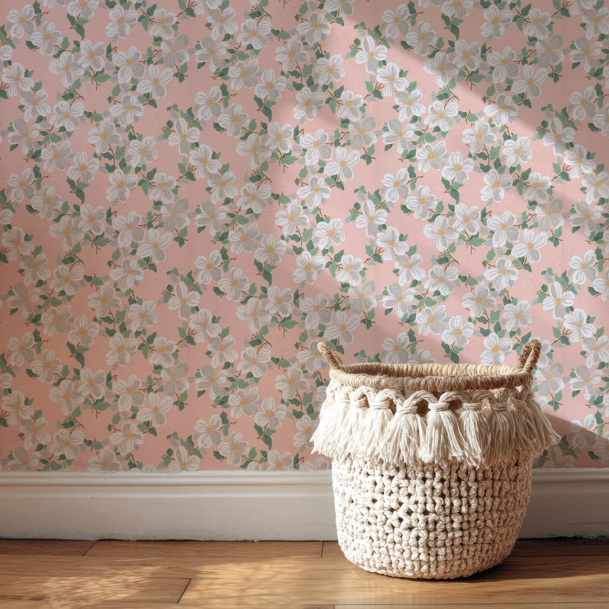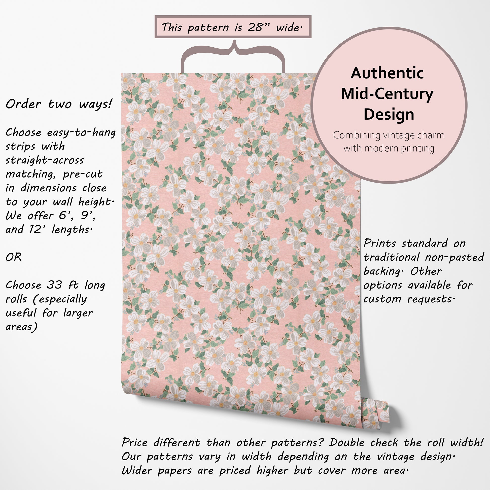 This wallpaper is a reproduction of an authentic 1940s floral design salvaged as part of the Hannah's Treasures Vintage Wallpaper collection.