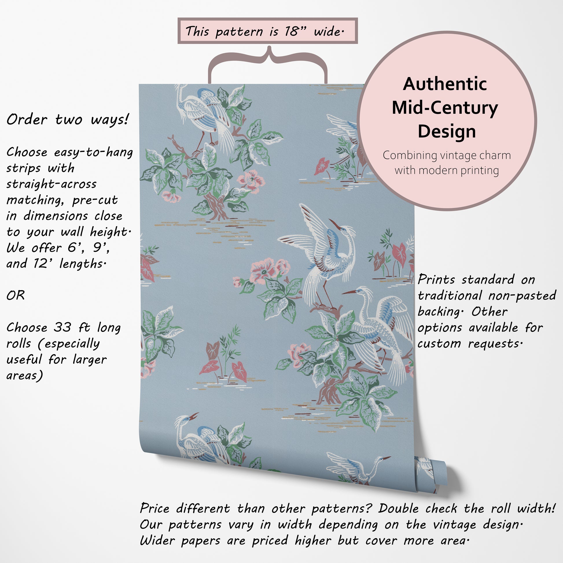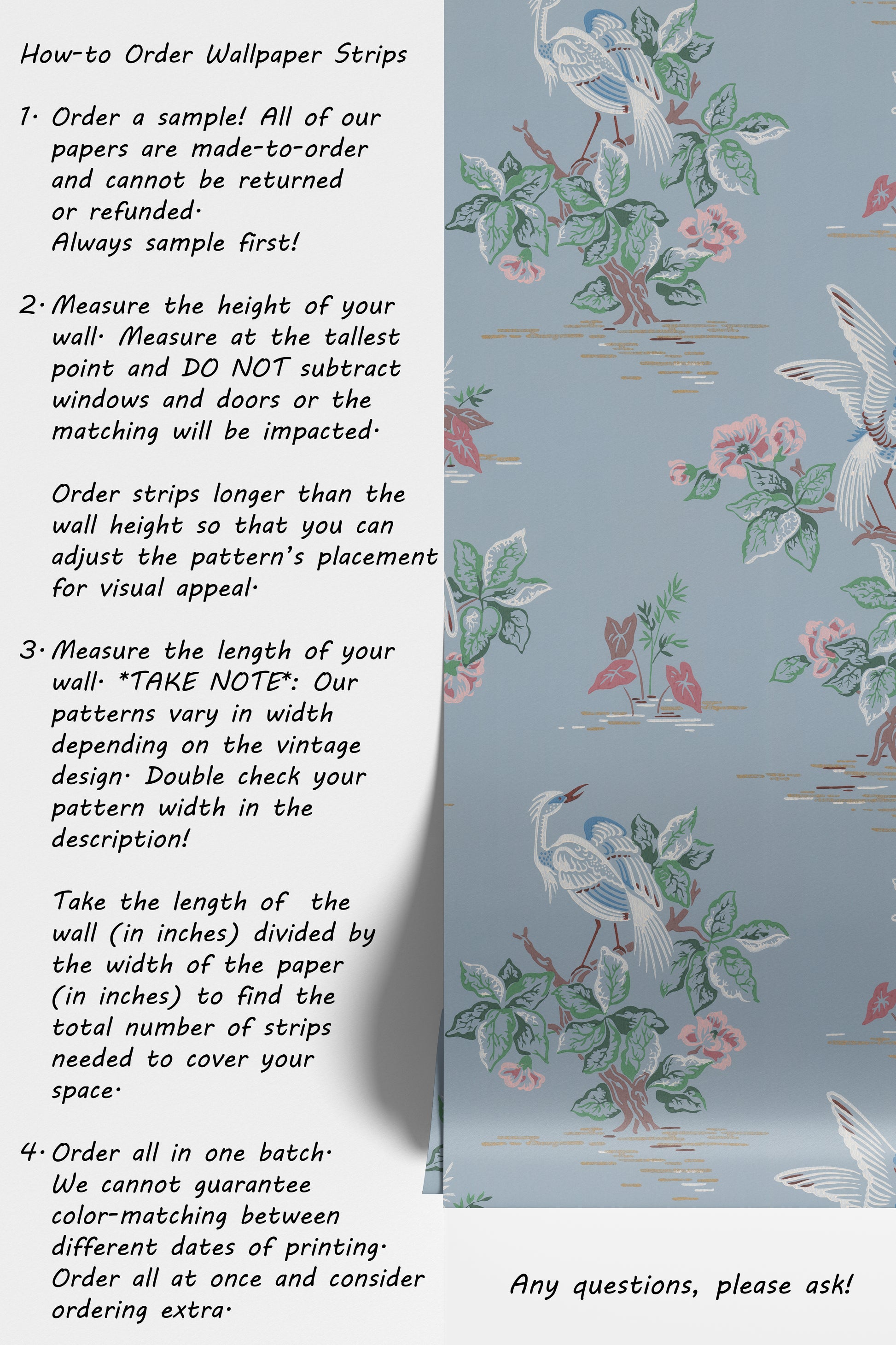 Our vintage wallpaper reproductions are printed to order and non-returnable.