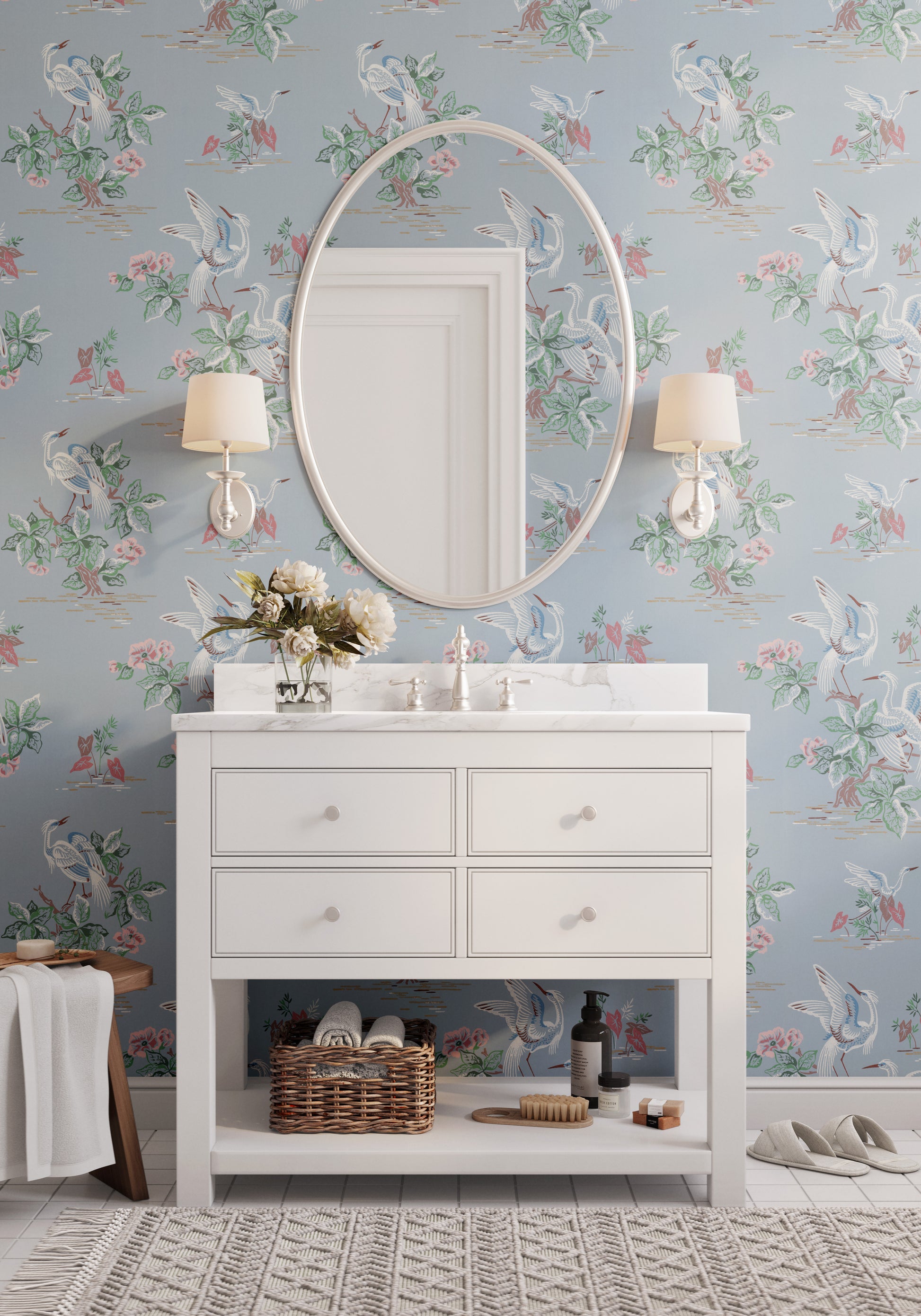 This wallpaper is a reproduction of an authentic 1950s bathroom design salvaged as part of the Hannah's Treasures Vintage Wallpaper collection.
