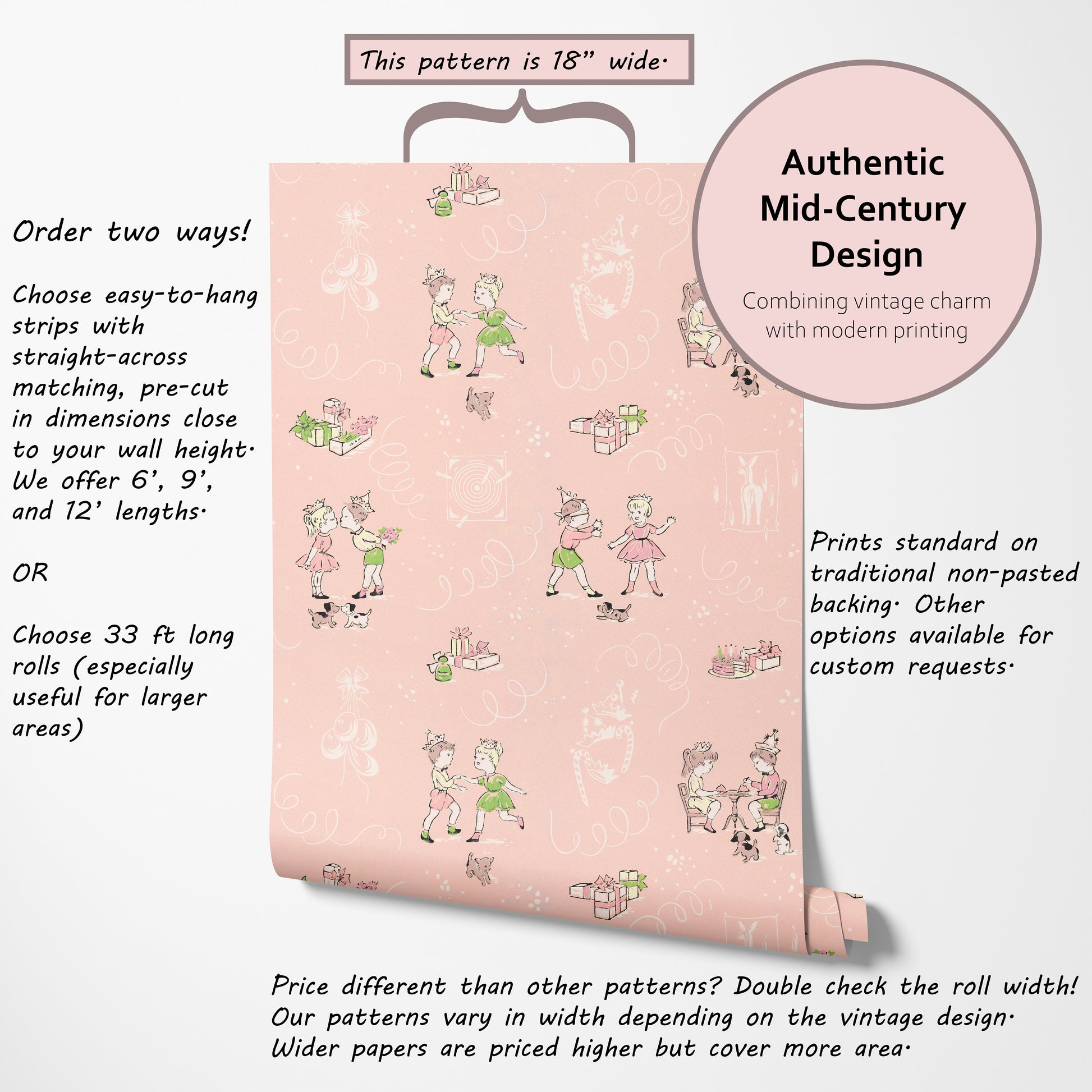 Our vintage wallpaper reproductions are printed to order and non-returnable.