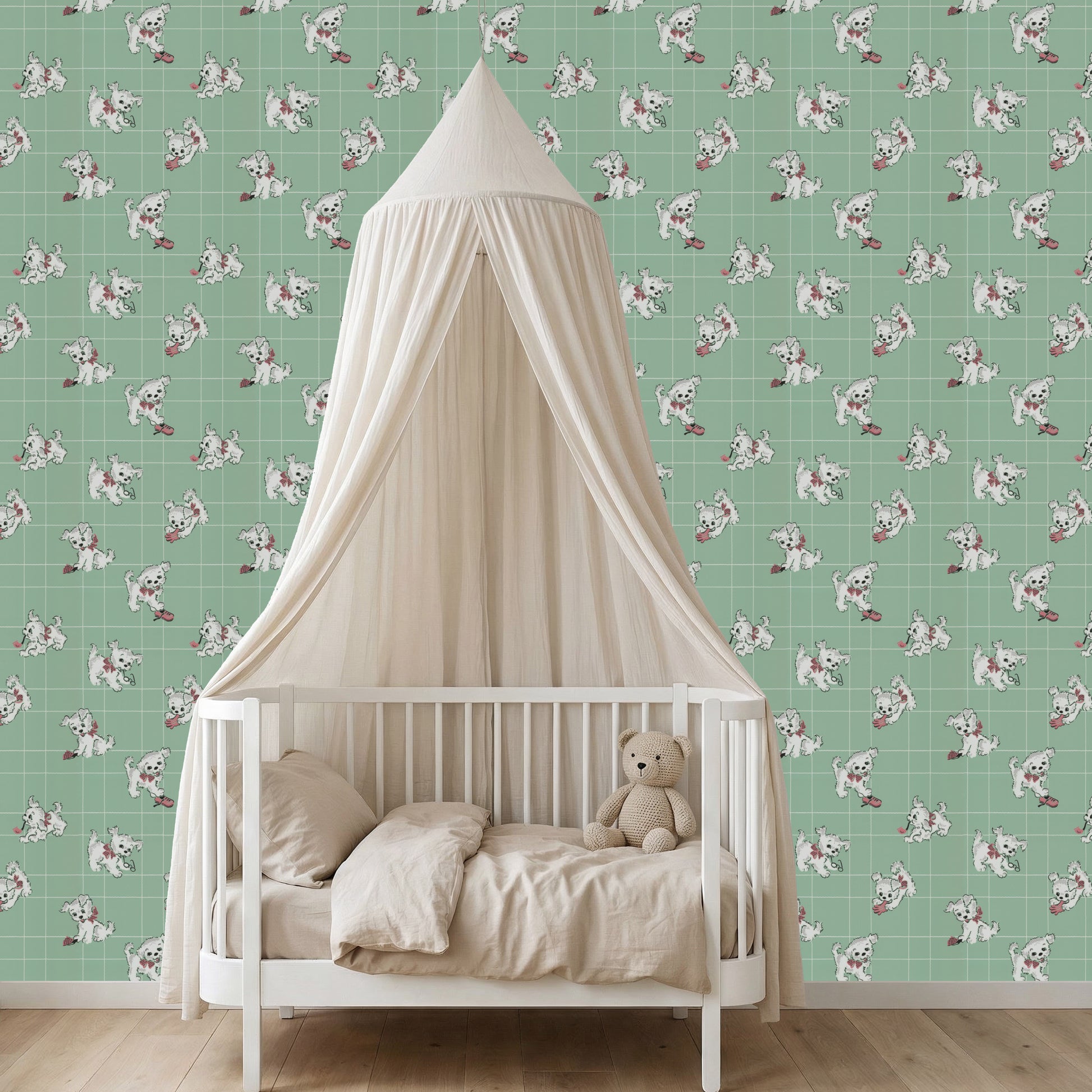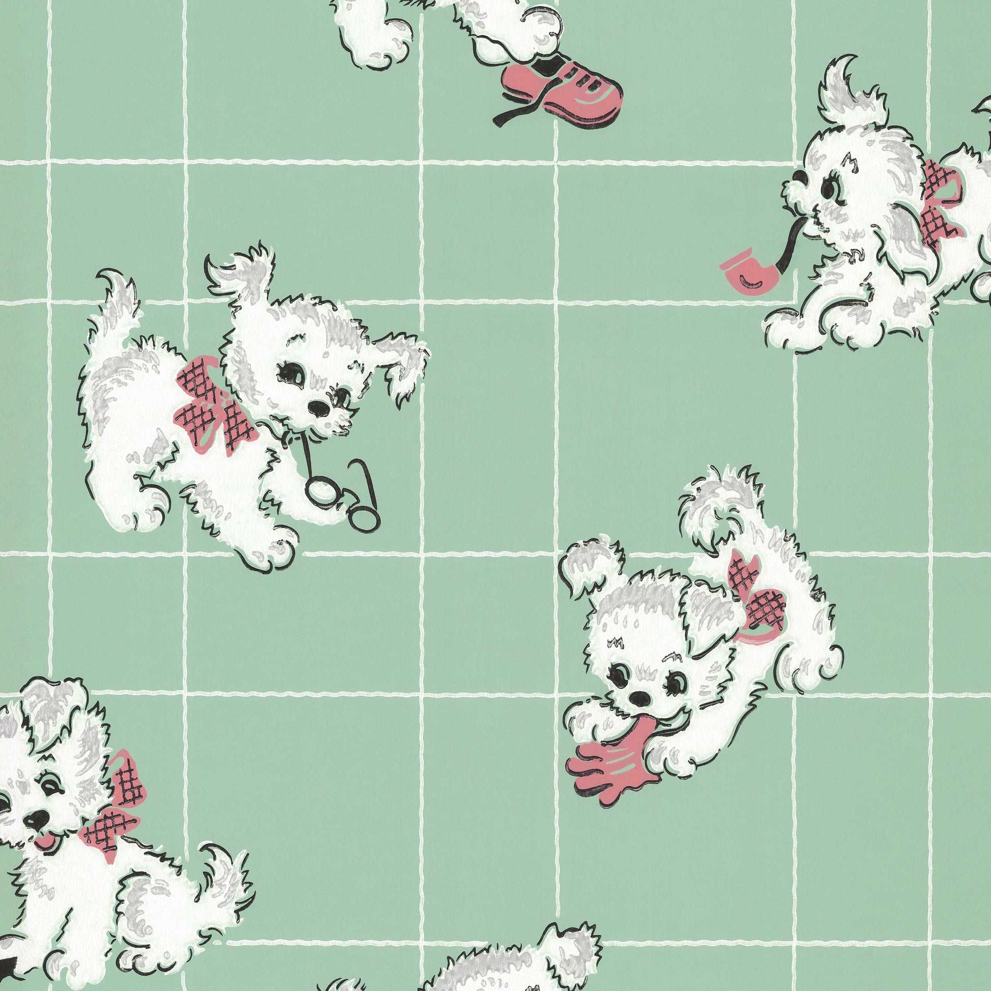 This wallpaper is a reproduction of an authentic 1940s children's design salvaged as part of the Hannah's Treasures Vintage Wallpaper collection.
