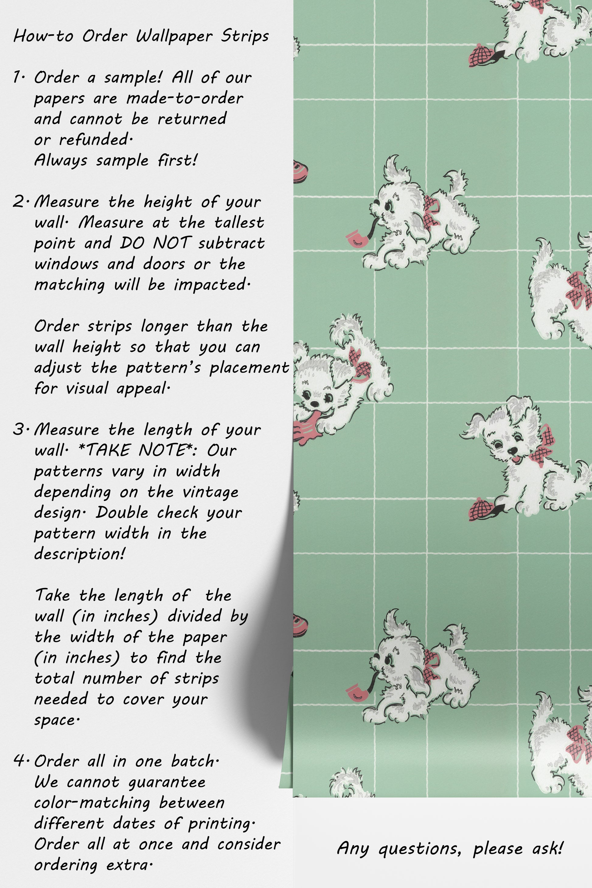 Our vintage wallpaper reproductions are printed to order and non-returnable.