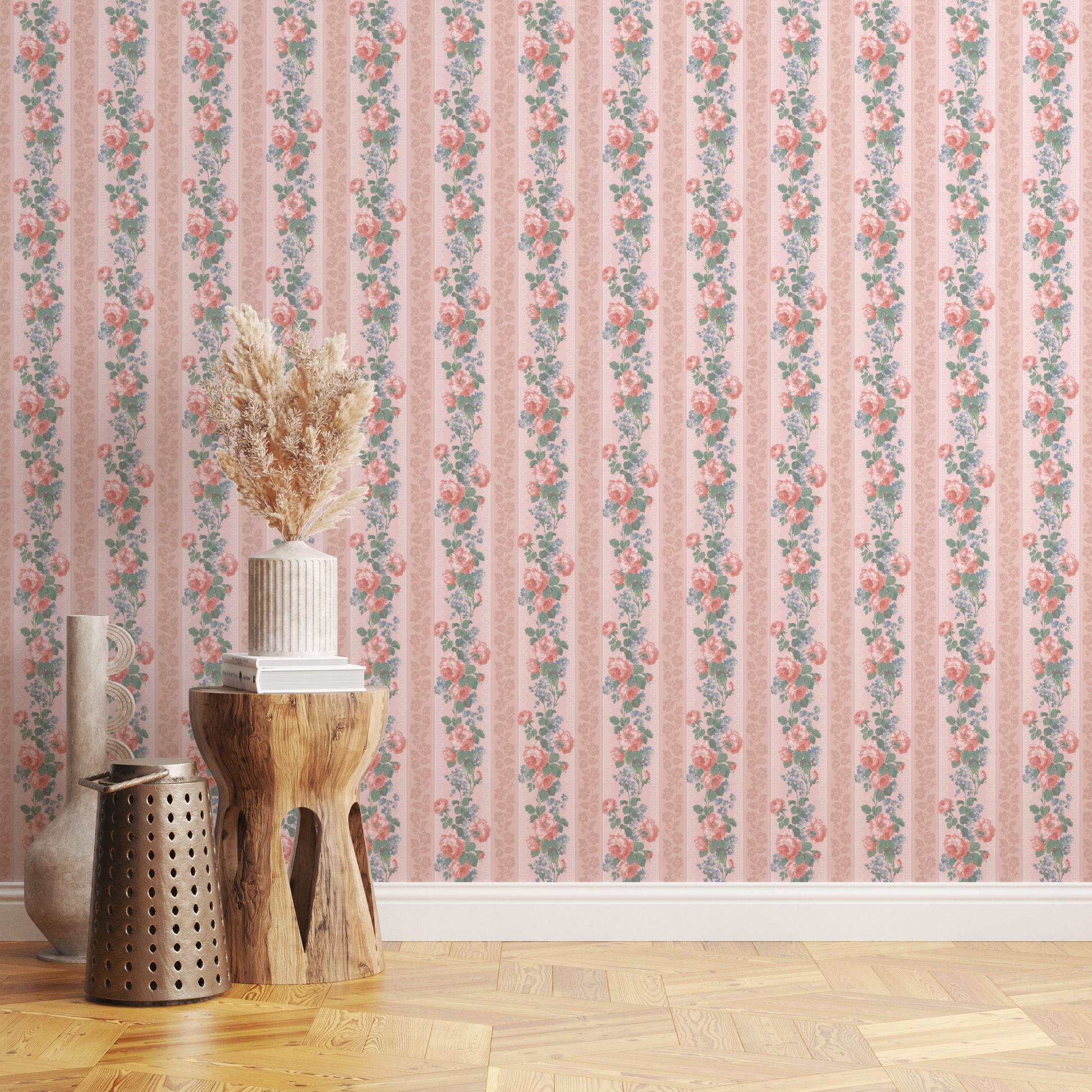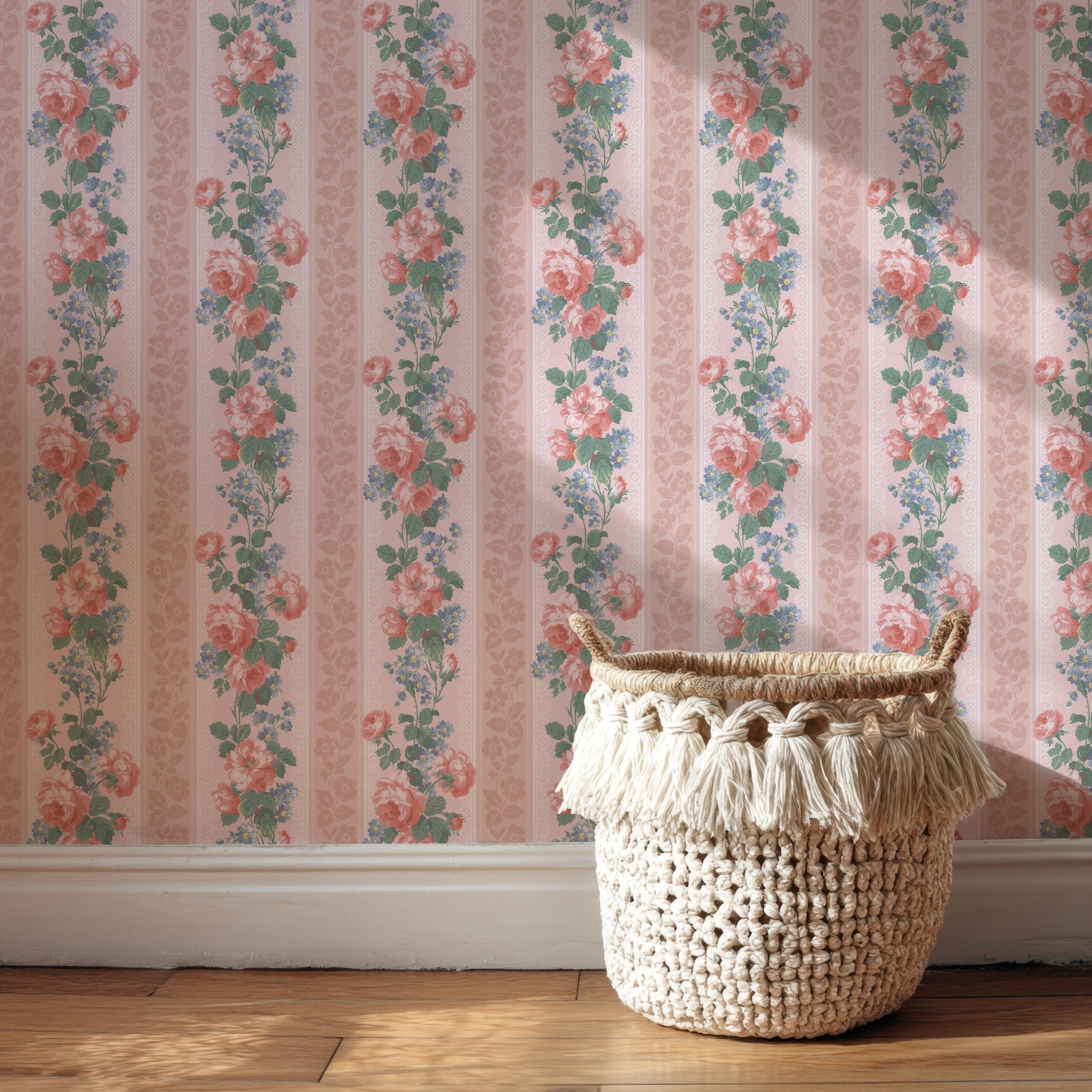 This wallpaper is a reproduction of an authentic 1950s floral design salvaged as part of the Hannah's Treasures Vintage Wallpaper collection.