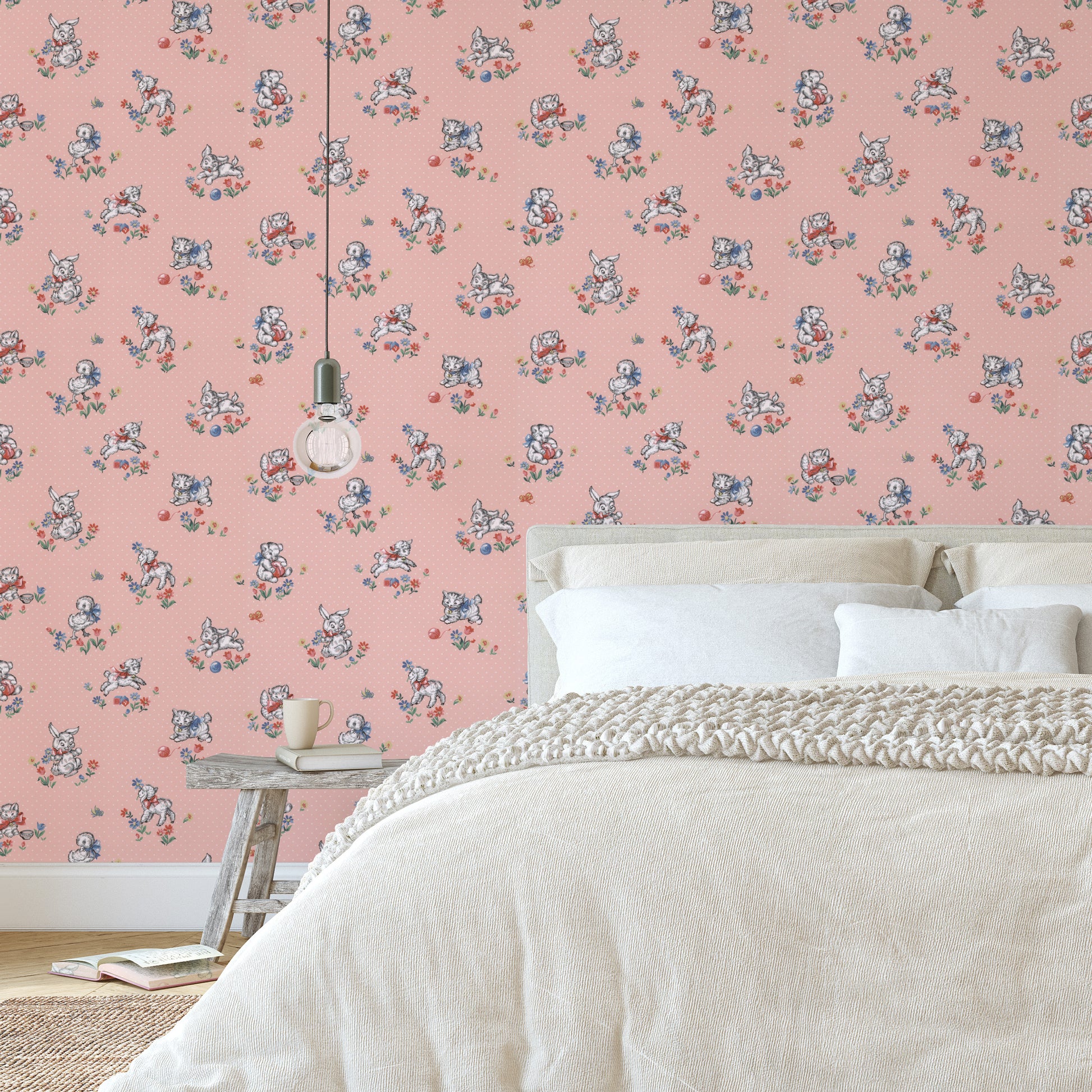 This wallpaper is a reproduction of an authentic 1940s children's design salvaged as part of the Hannah's Treasures Vintage Wallpaper collection.