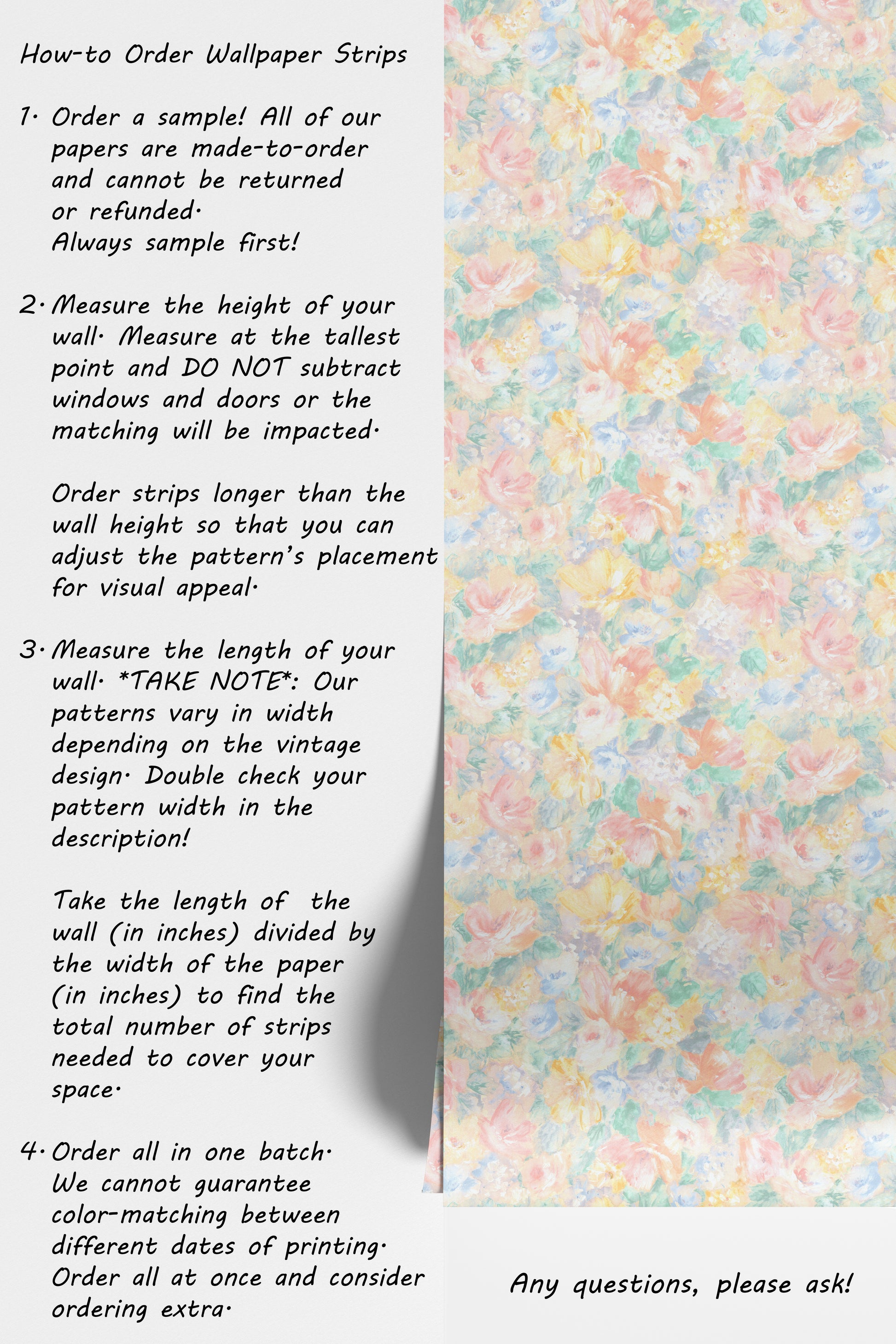 - Order a sample -- all of our wallpaper reproduction are made-to-order and cannot be returned or refunded. Always sample first!