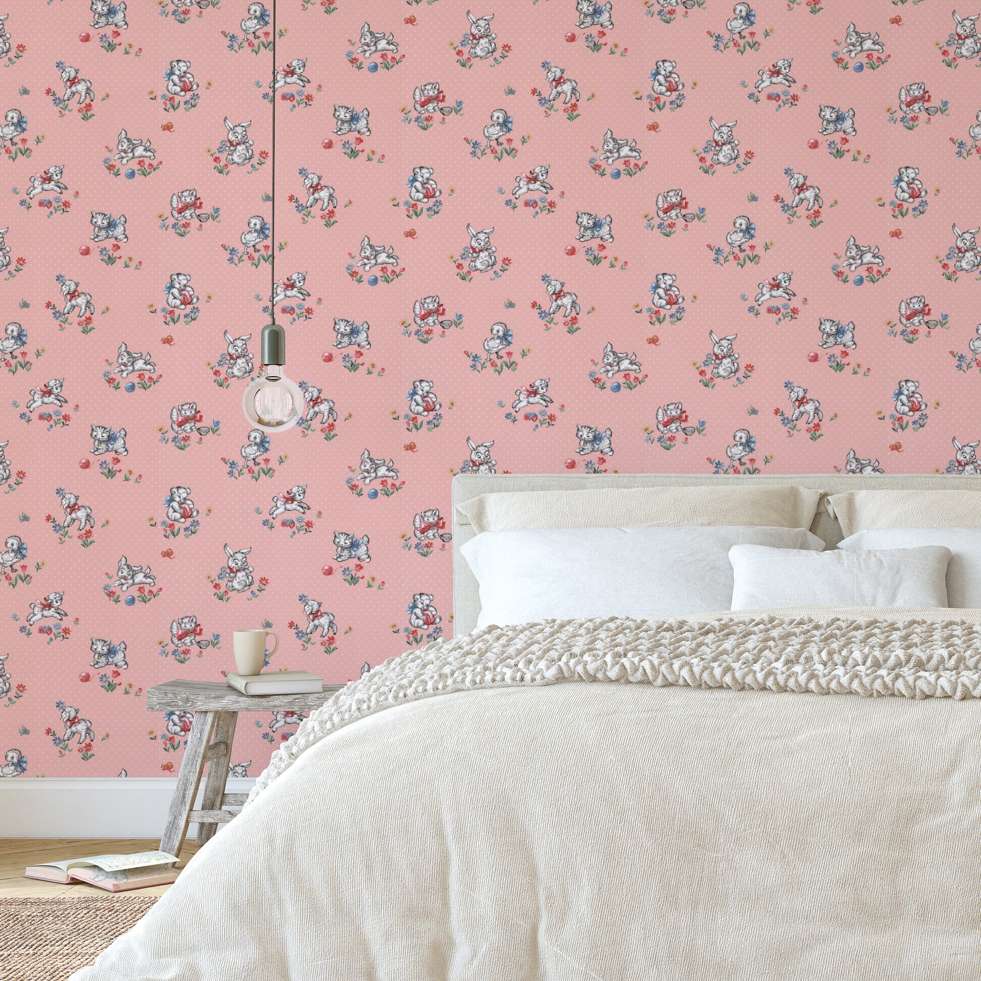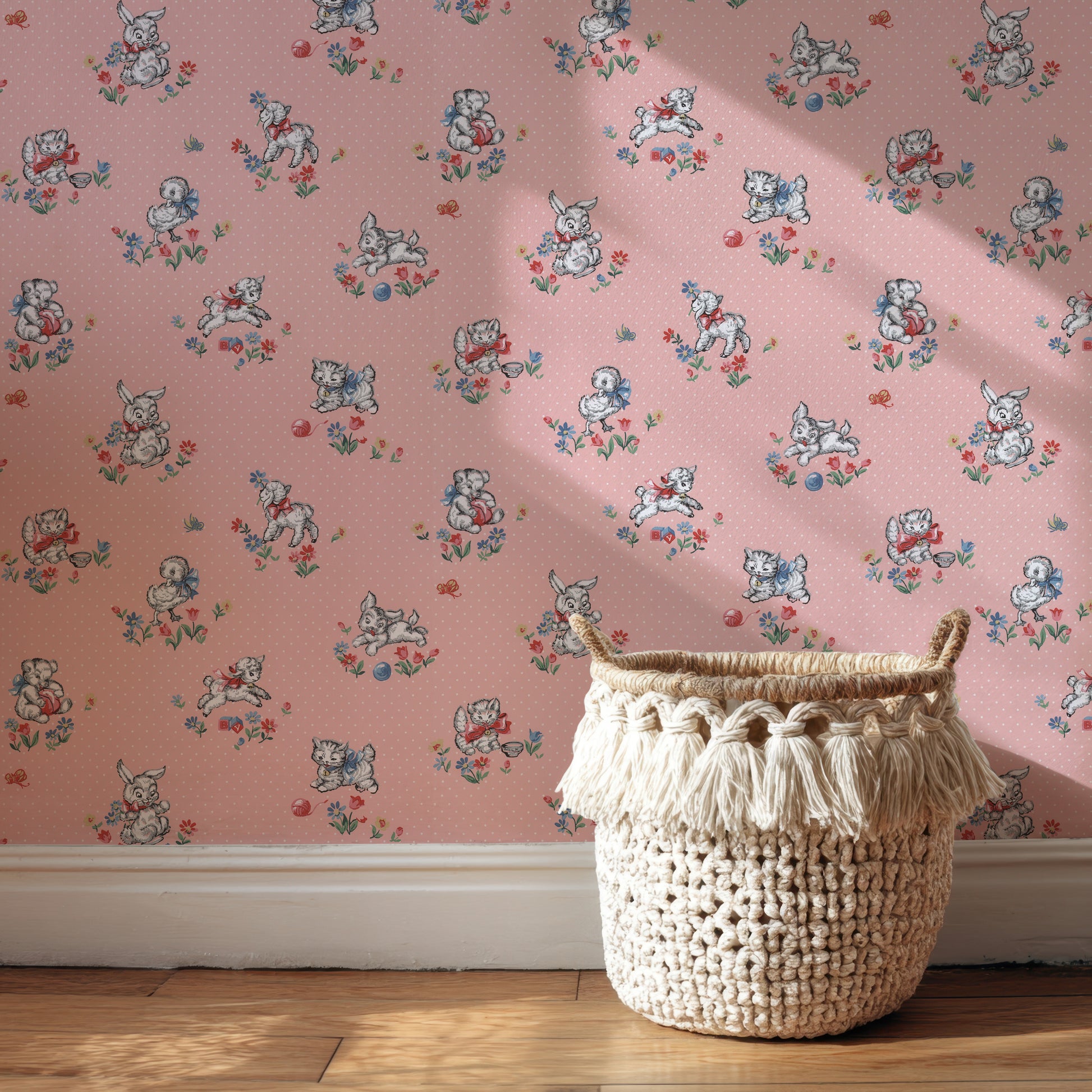 This wallpaper is a reproduction of an authentic 1940s children's design salvaged as part of the Hannah's Treasures Vintage Wallpaper collection.