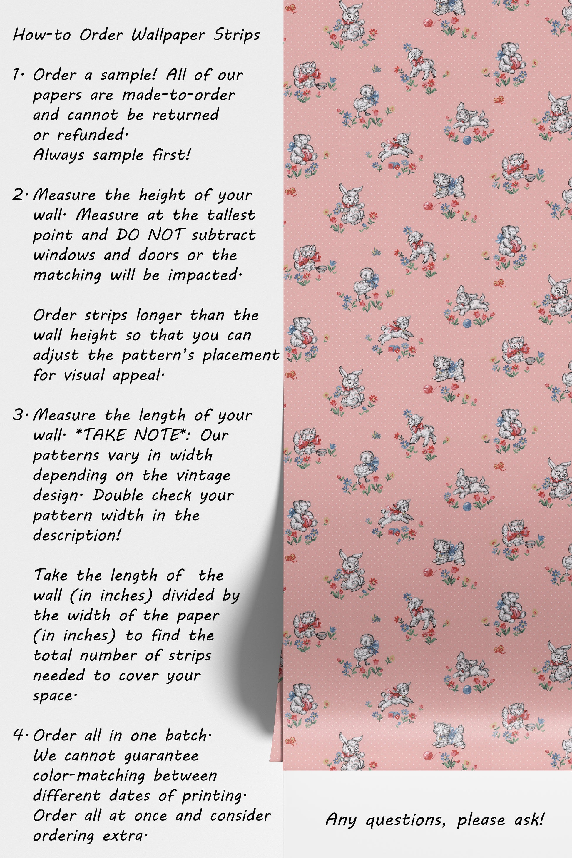 Our vintage wallpaper reproductions are printed to order and non-returnable.