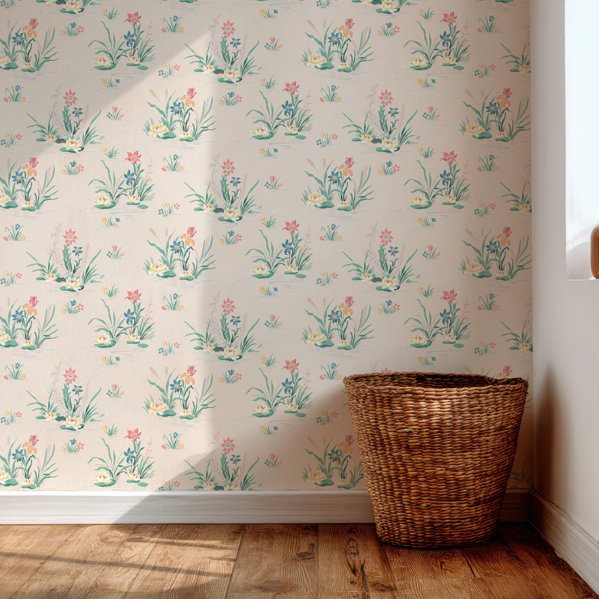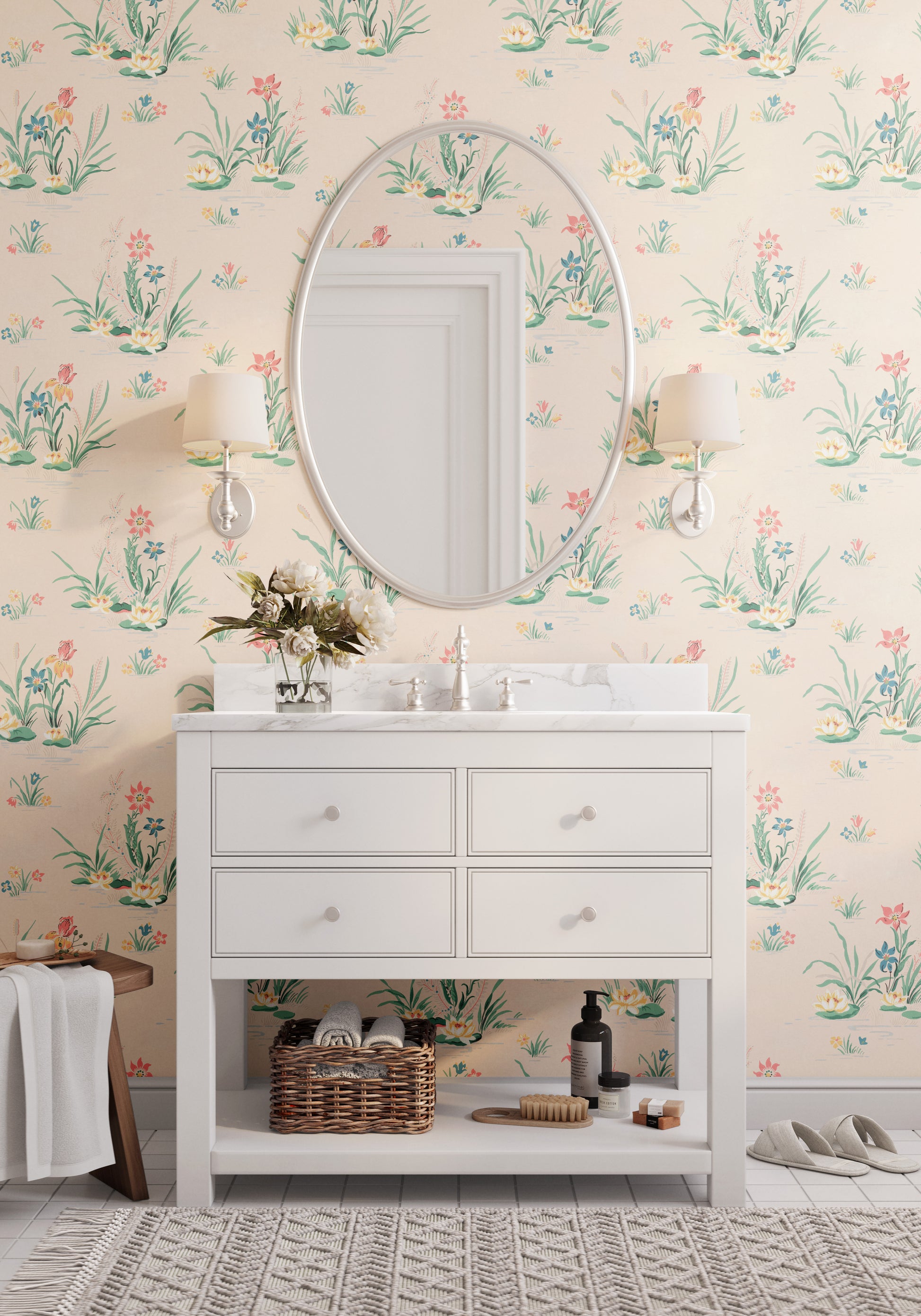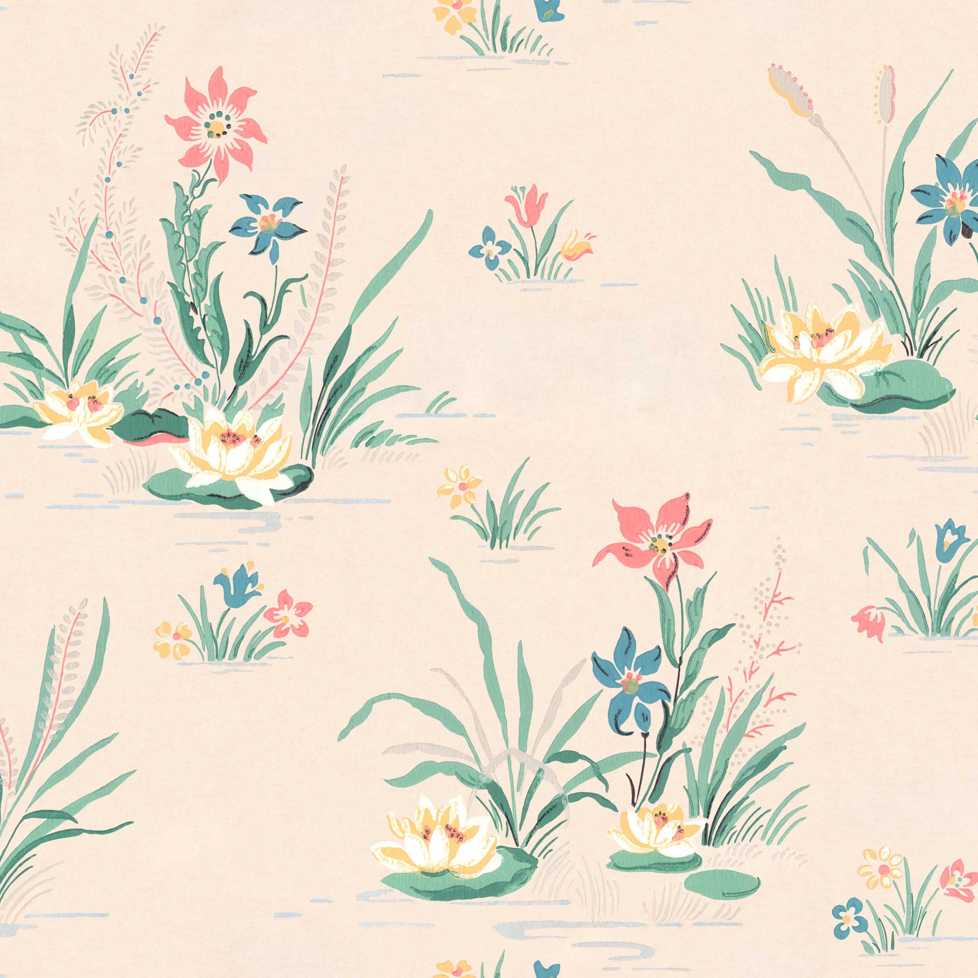 This wallpaper is a reproduction of an authentic 1940s bathroom design salvaged as part of the Hannah's Treasures Vintage Wallpaper collection.