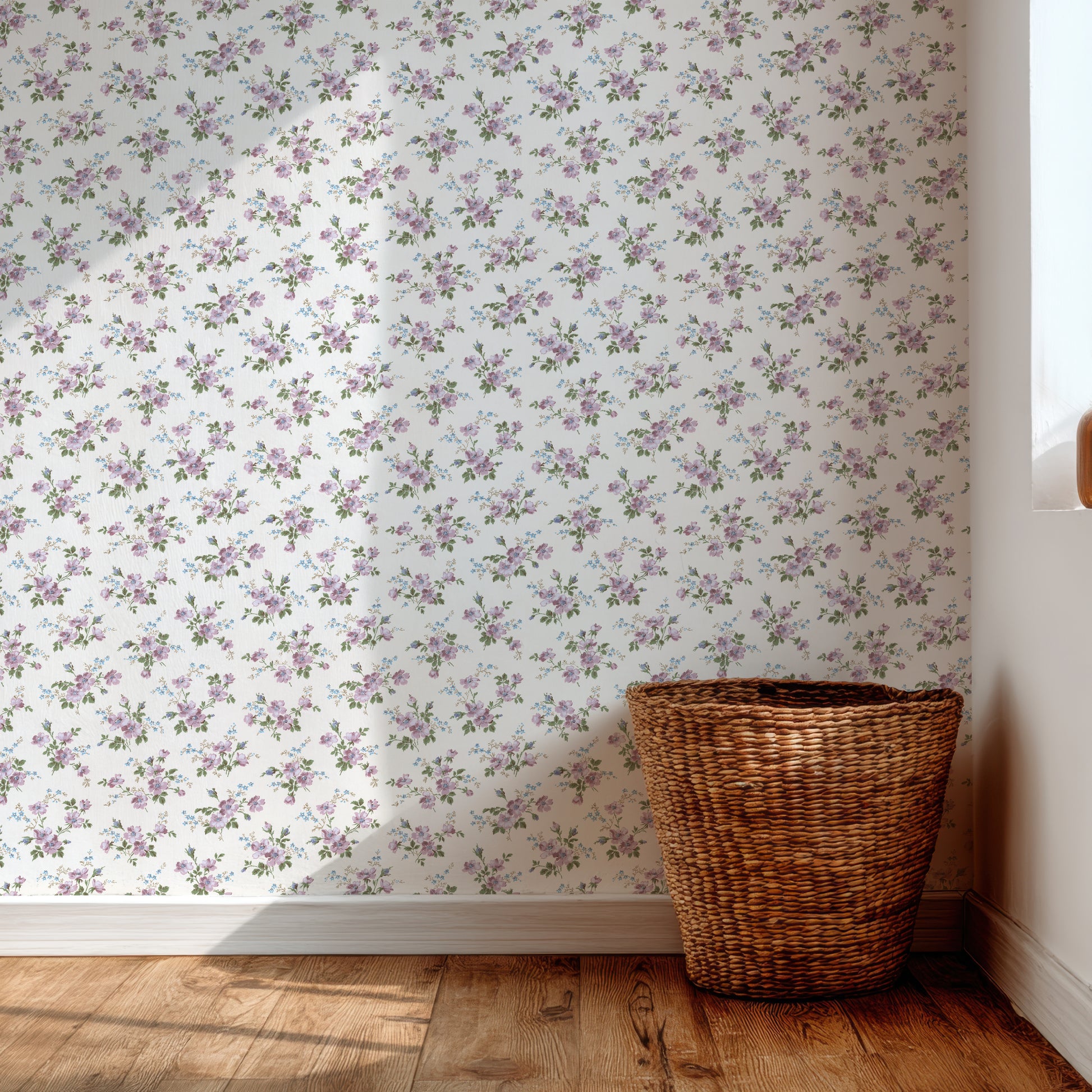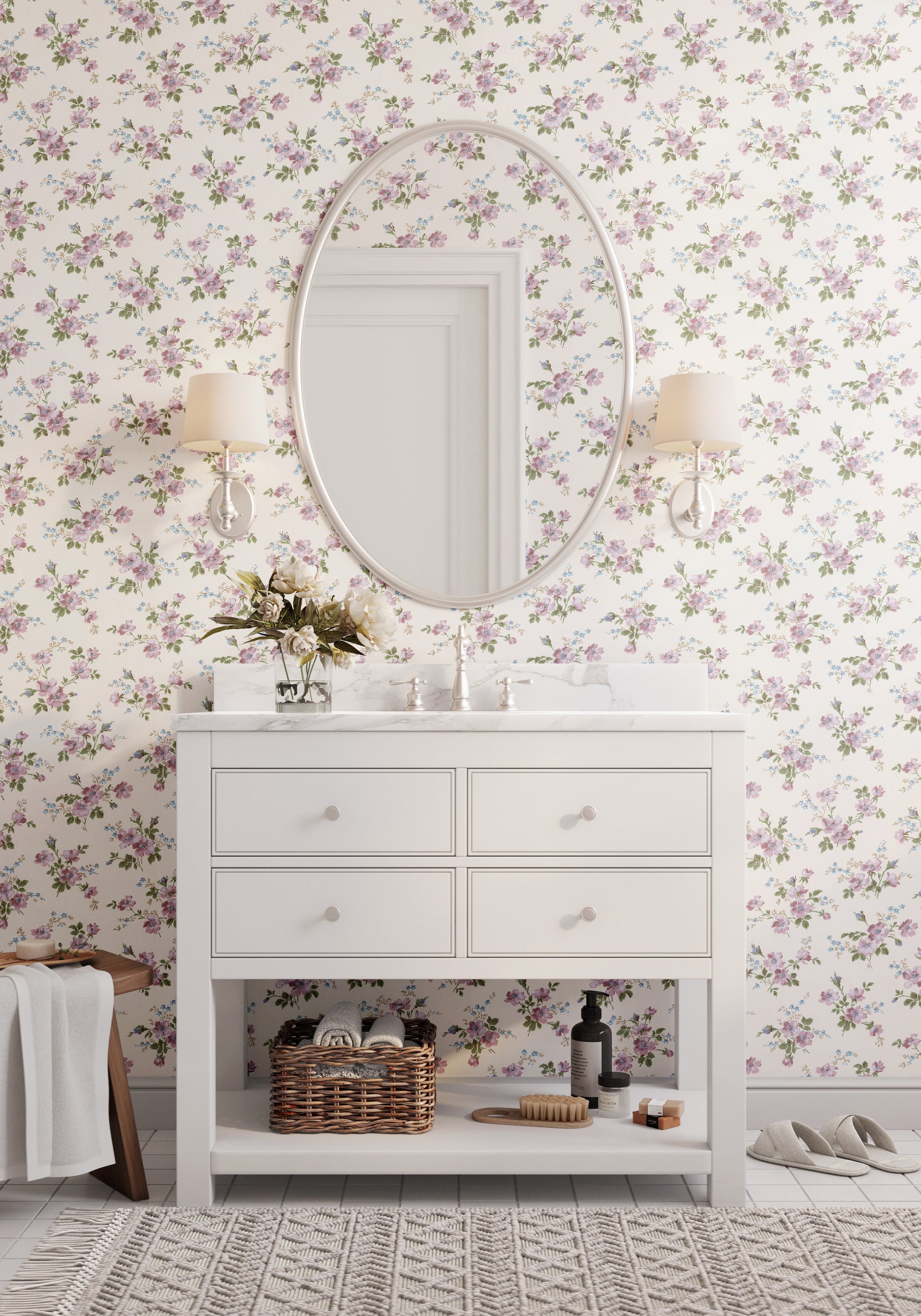 This wallpaper is a reproduction of an authentic 1950s floral design salvaged as part of the Hannah's Treasures Vintage Wallpaper collection.